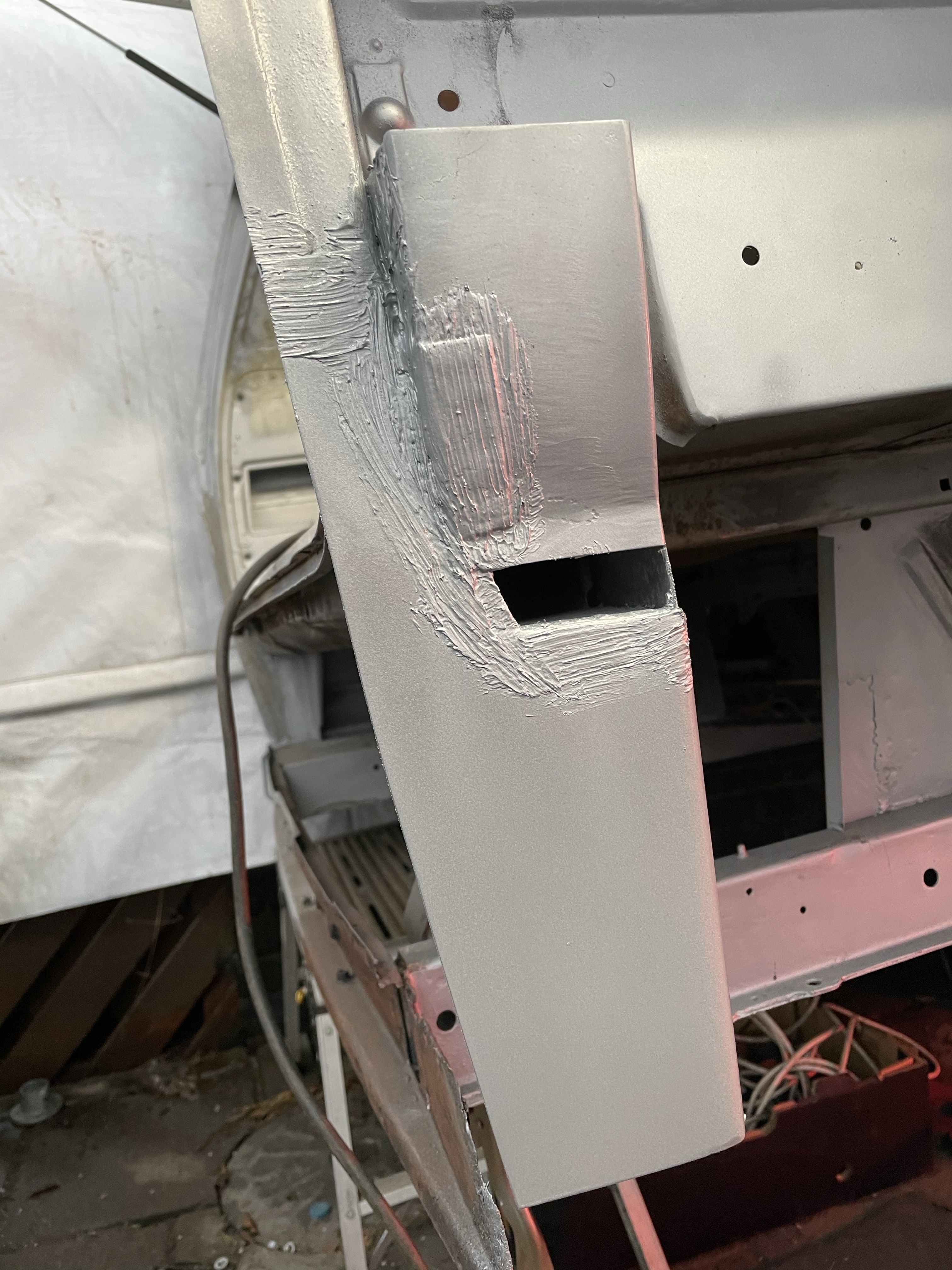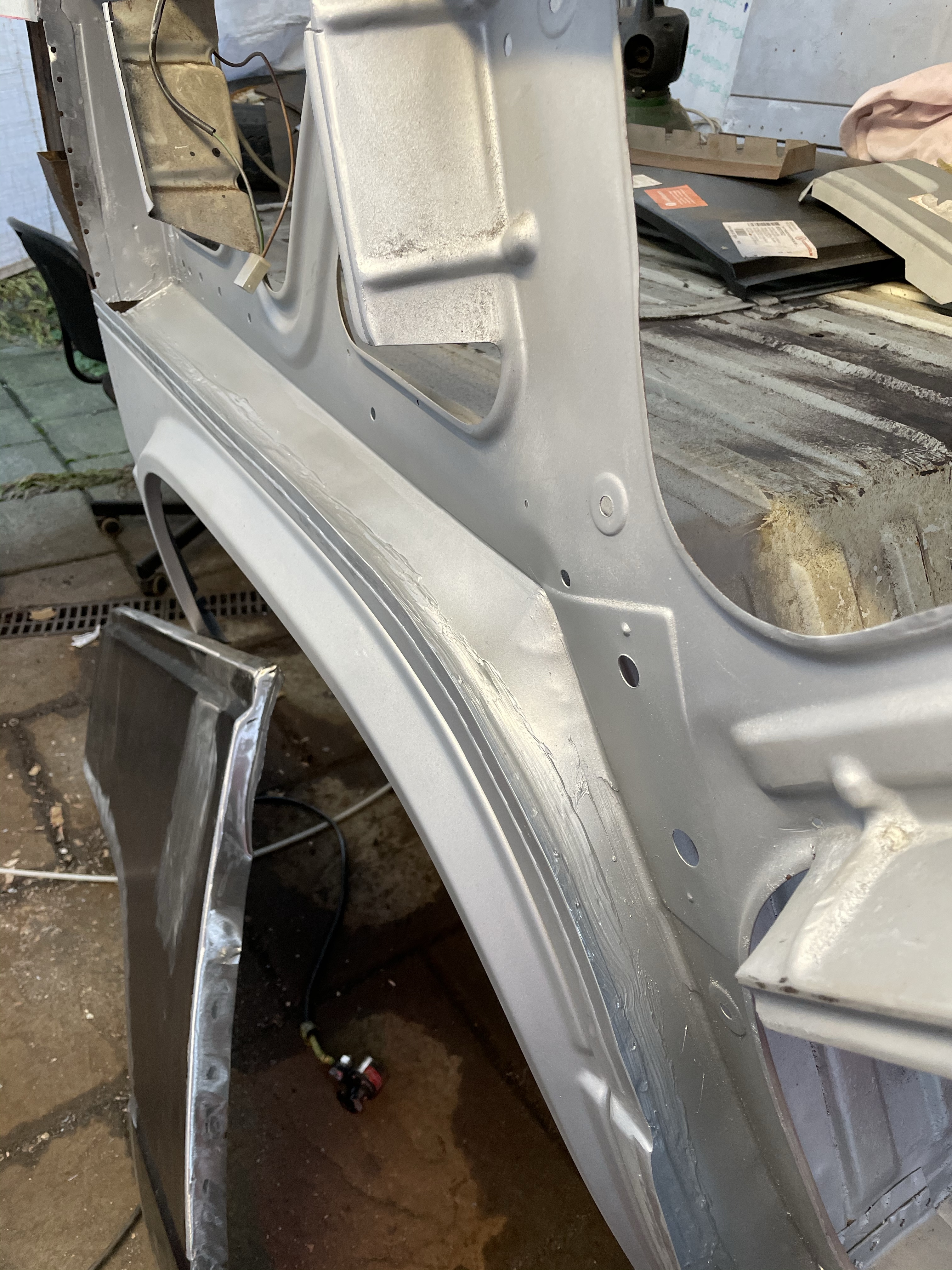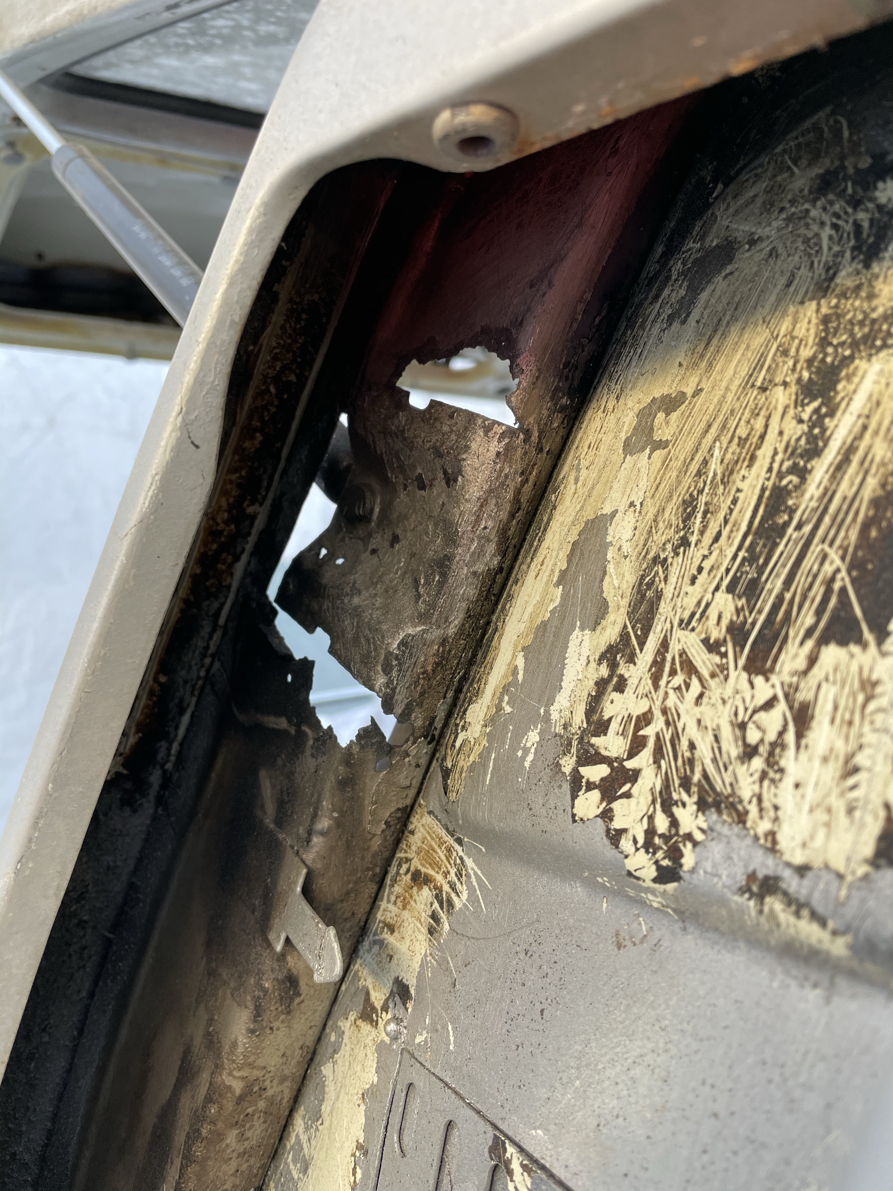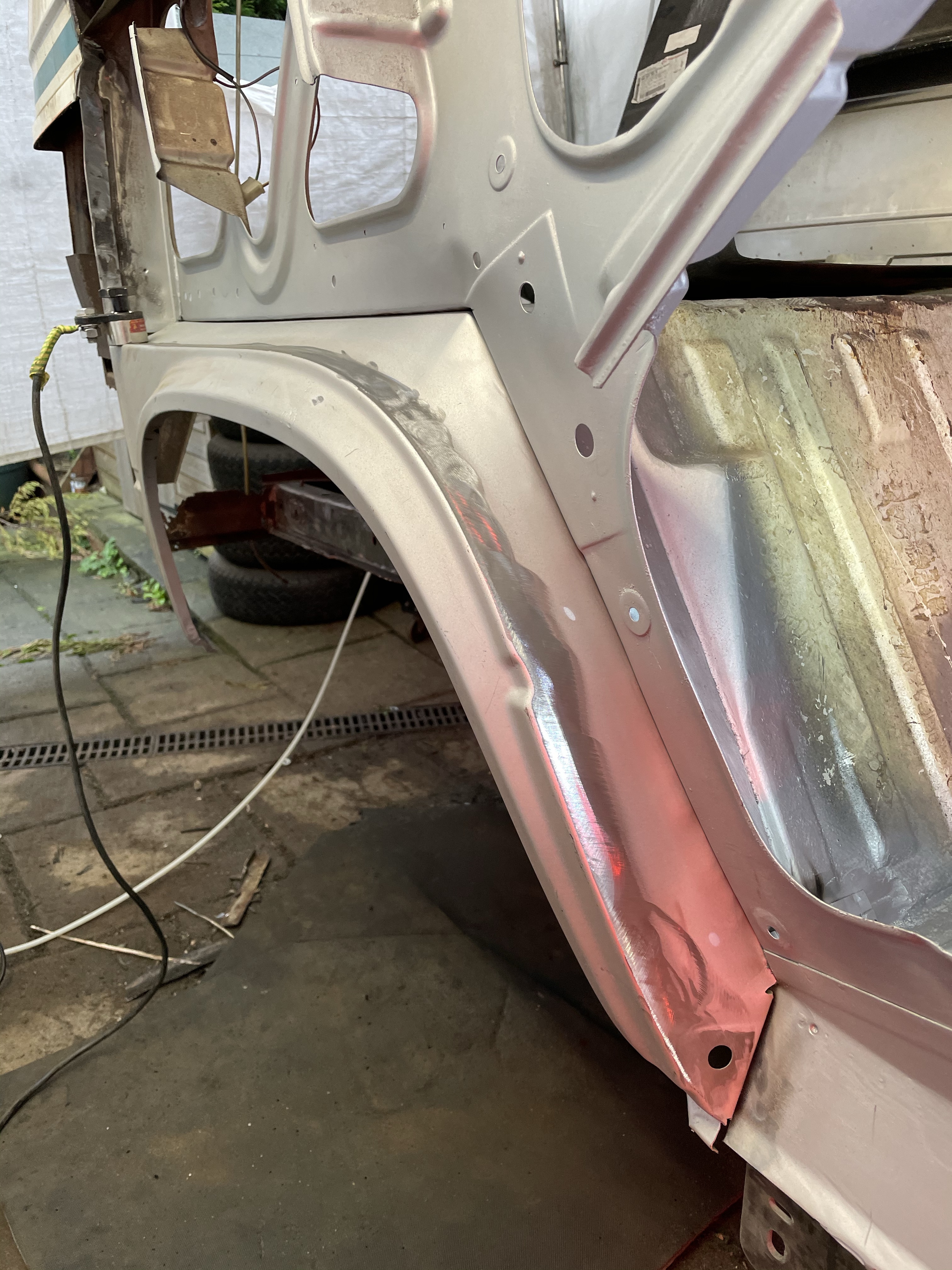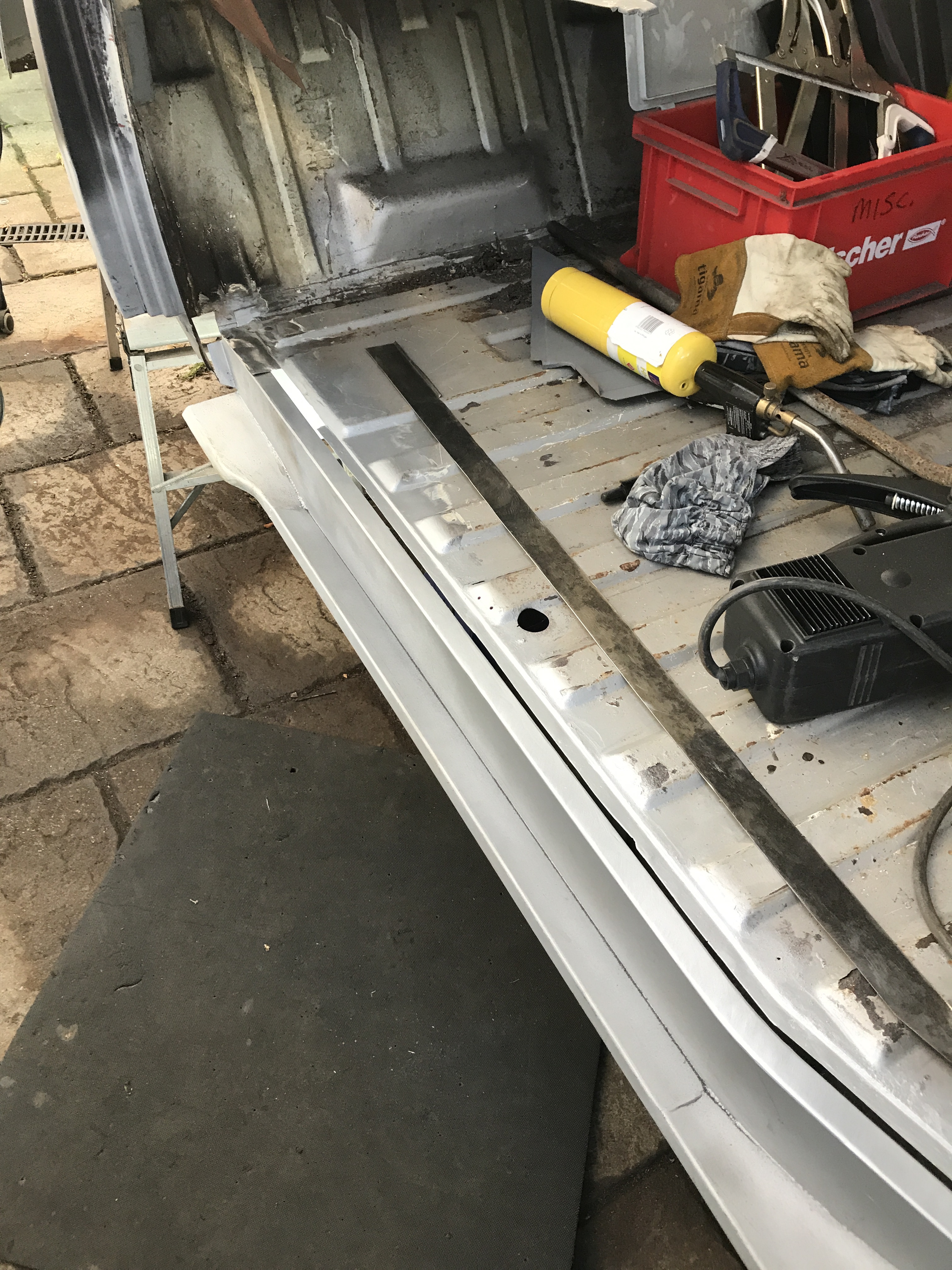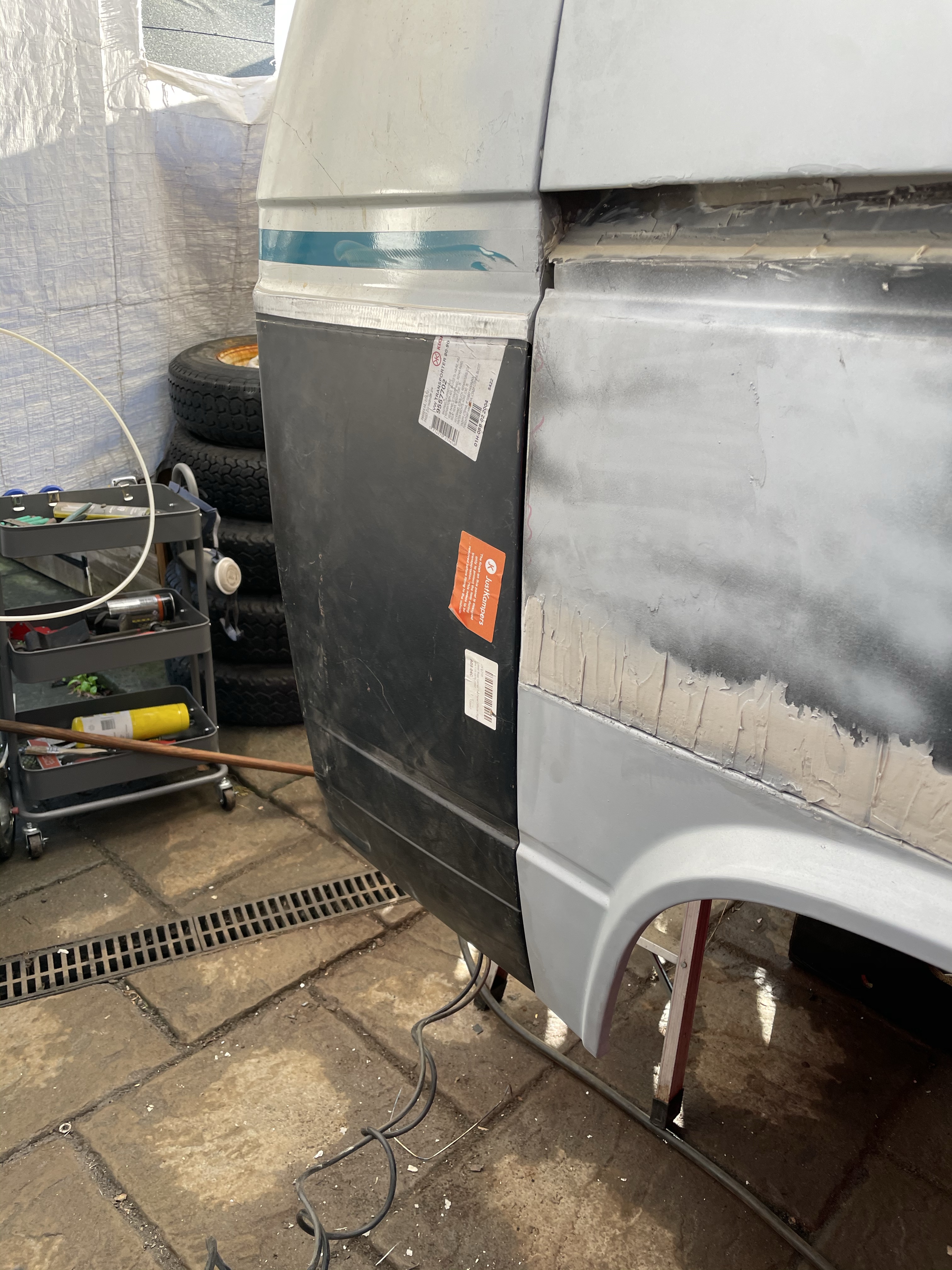 One of the first things that i noticed when i bought the van was the condition of the strut mounts on the tailgate, i could tell they were corroded but the way they are set in and the amount of filler and paint etc.. i wasn’t sure how much of it was rust / rot and how much was just the weird positioning of the brackets, so after stripping it all back and cutting out the rot i did a bit of research and lots of looking at other vans it was time i tackled mine, i found a few other suspect looking holes up towards the roof line that will get sanded back and inspected before i weld those up too. Tailgate is finally solid again in its opening and closing action and sits correct on the shut lines, also i am not worried it fall off when i open it anymore.