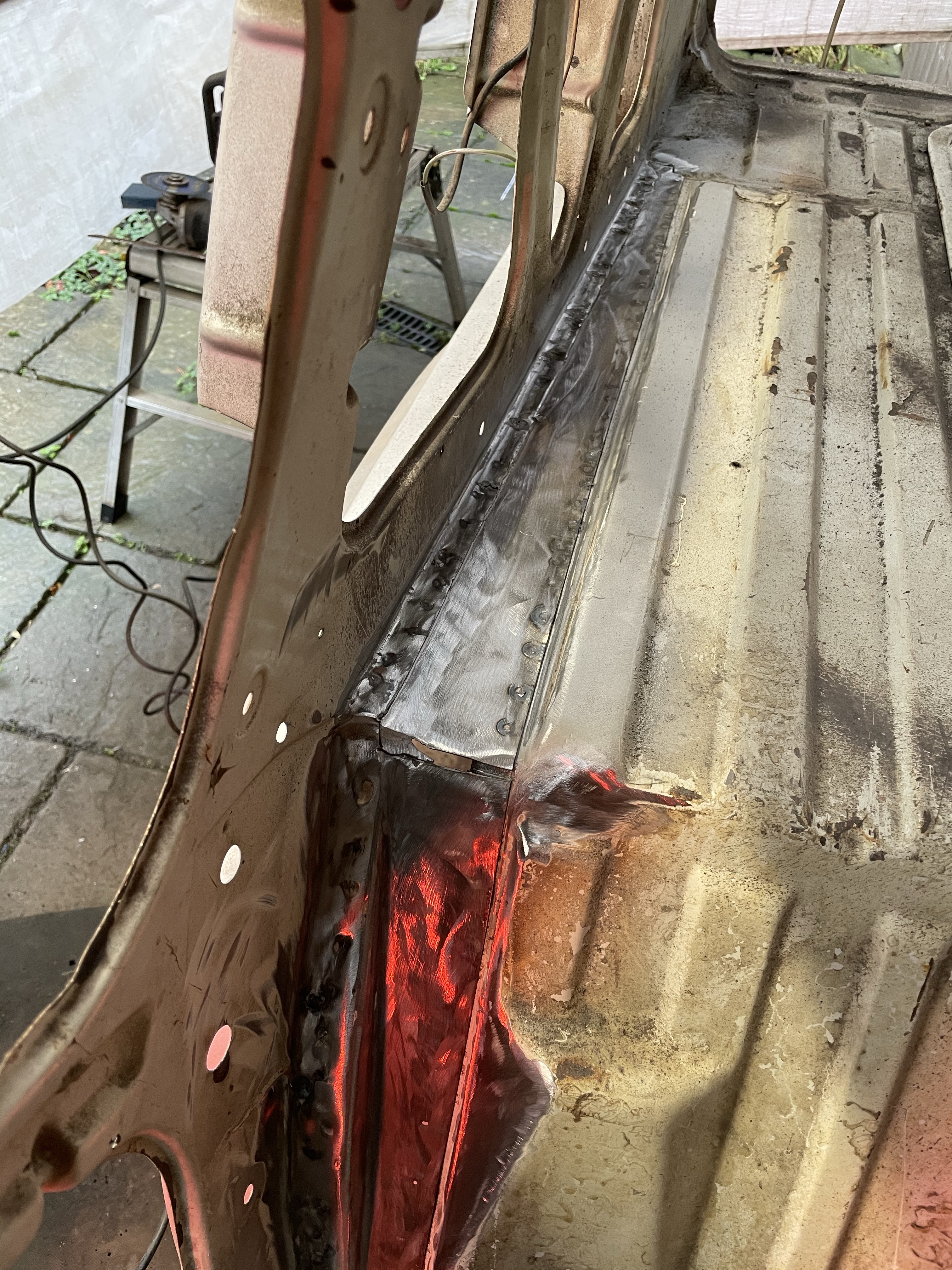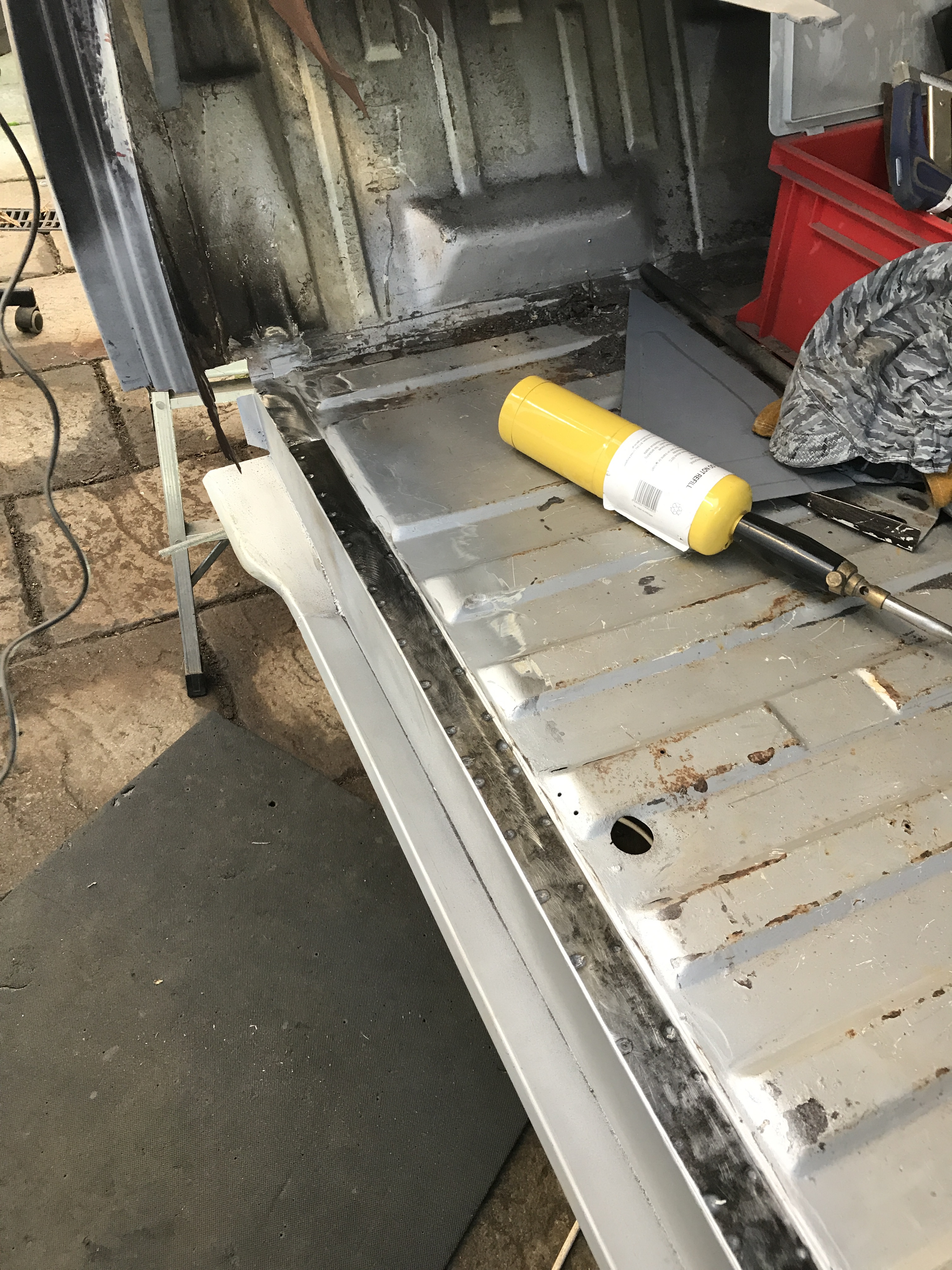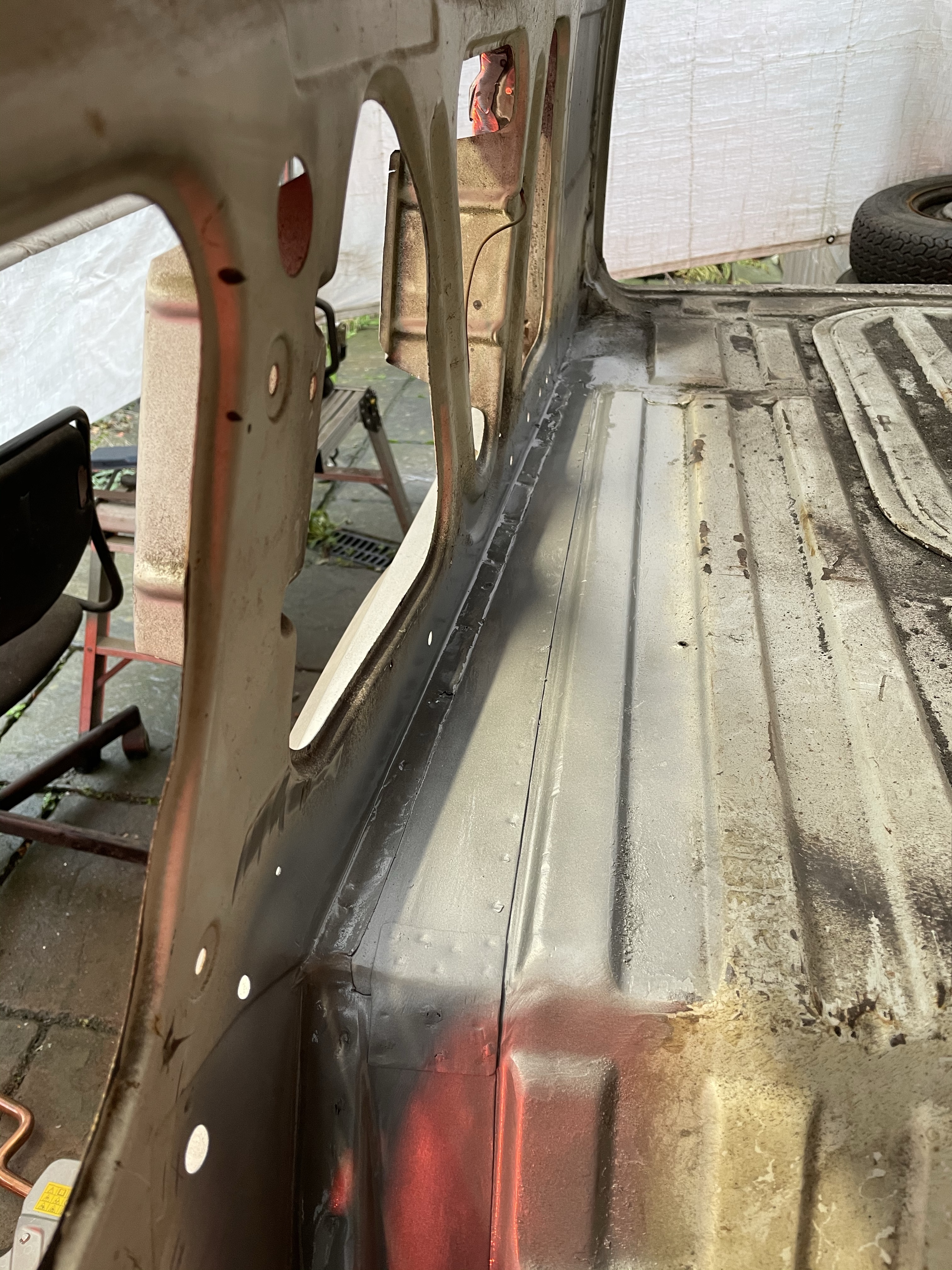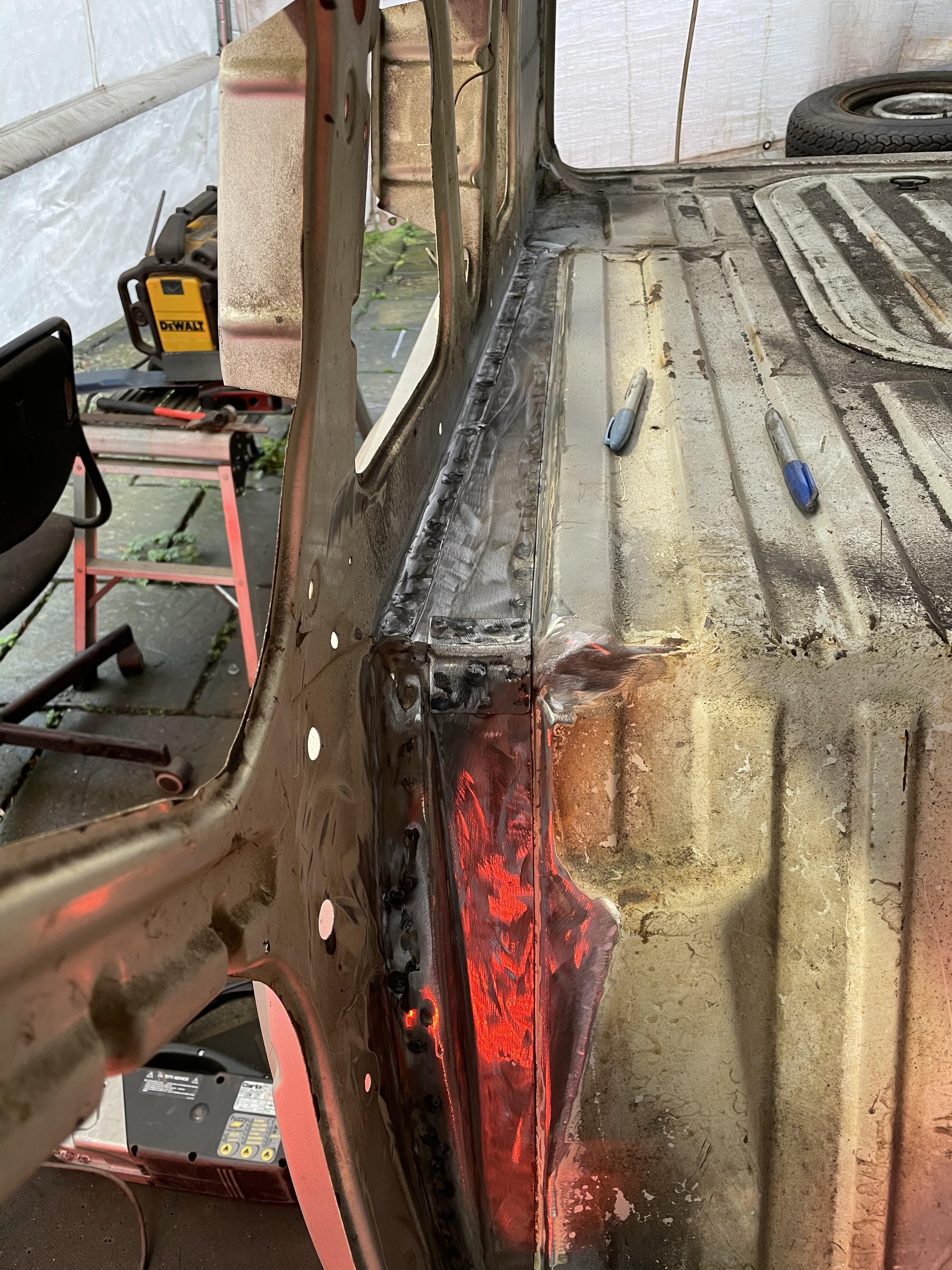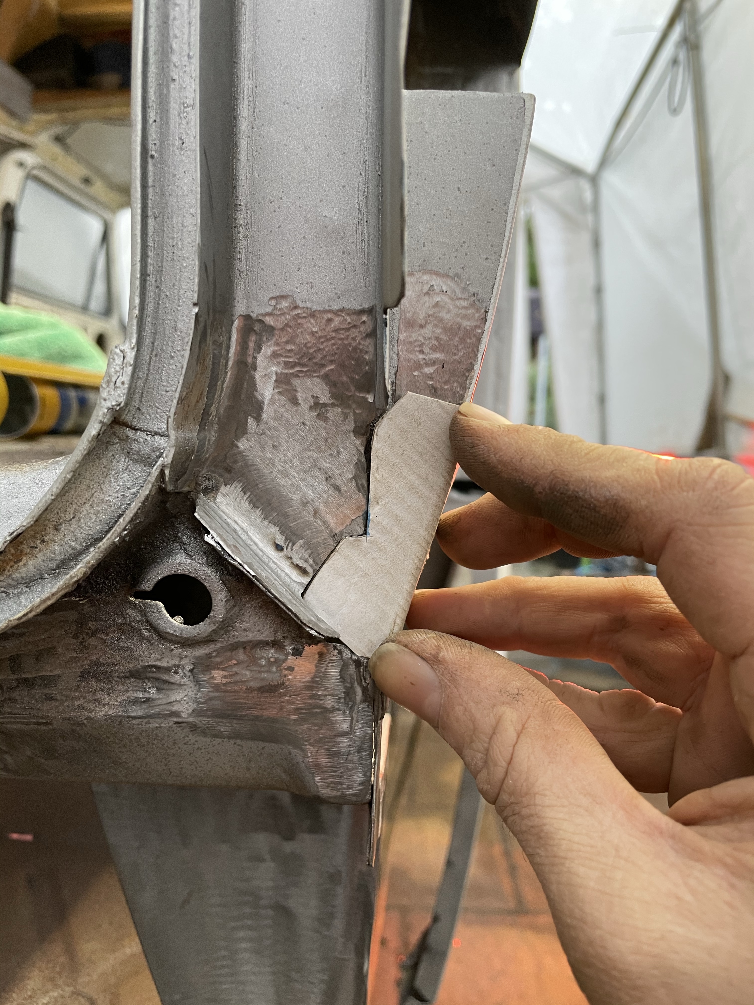 One of the first things that i noticed when i bought the van was the condition of the strut mounts on the tailgate, i could tell they were corroded but the way they are set in and the amount of filler and paint etc.. i wasn’t sure how much of it was rust / rot and how much was just the weird positioning of the brackets, so after stripping it all back and cutting out the rot i did a bit of research and lots of looking at other vans it was time i tackled mine, i found a few other suspect looking holes up towards the roof line that will get sanded back and inspected before i weld those up too. Tailgate is finally solid again in its opening and closing action and sits correct on the shut lines, also i am not worried it fall off when i open it anymore.