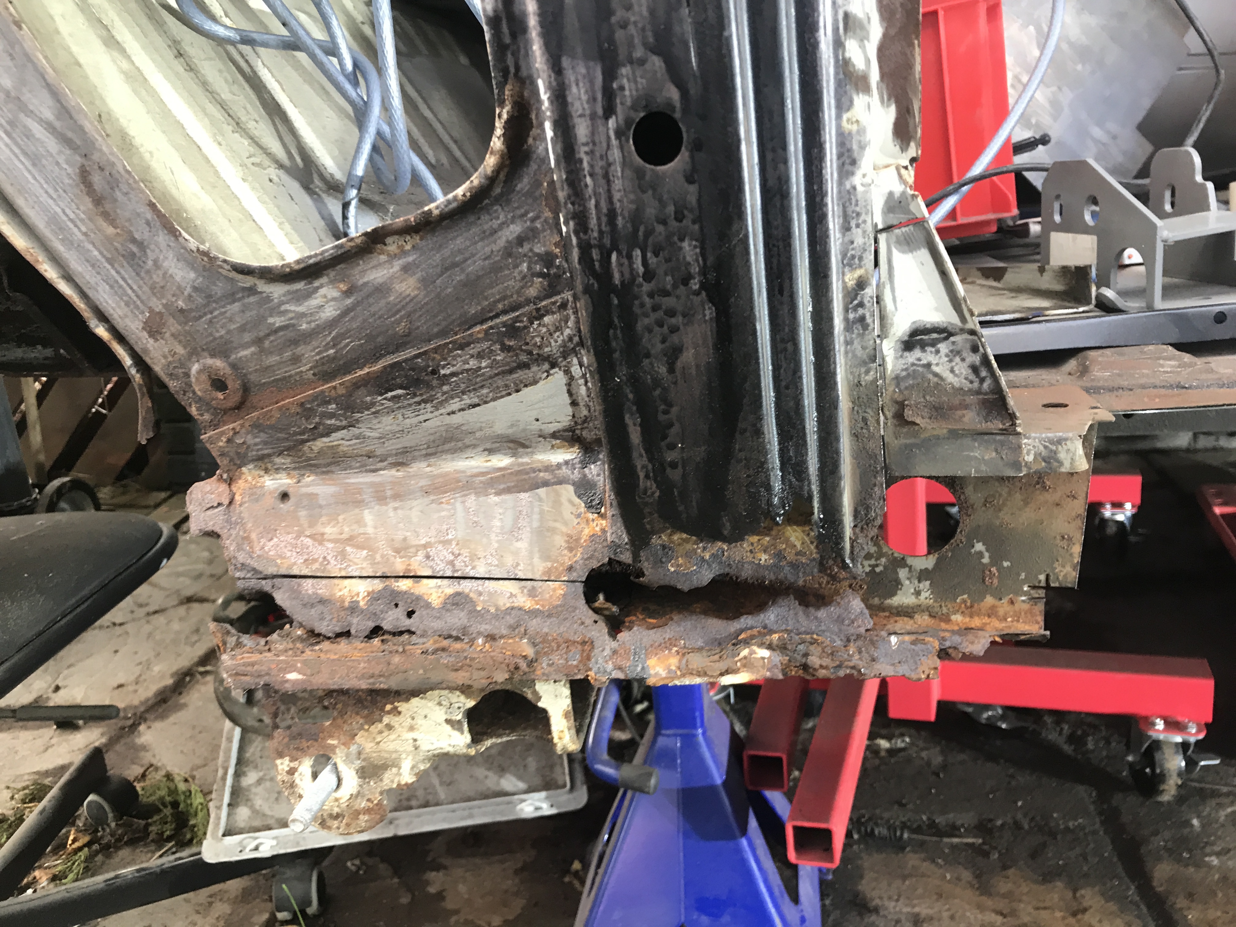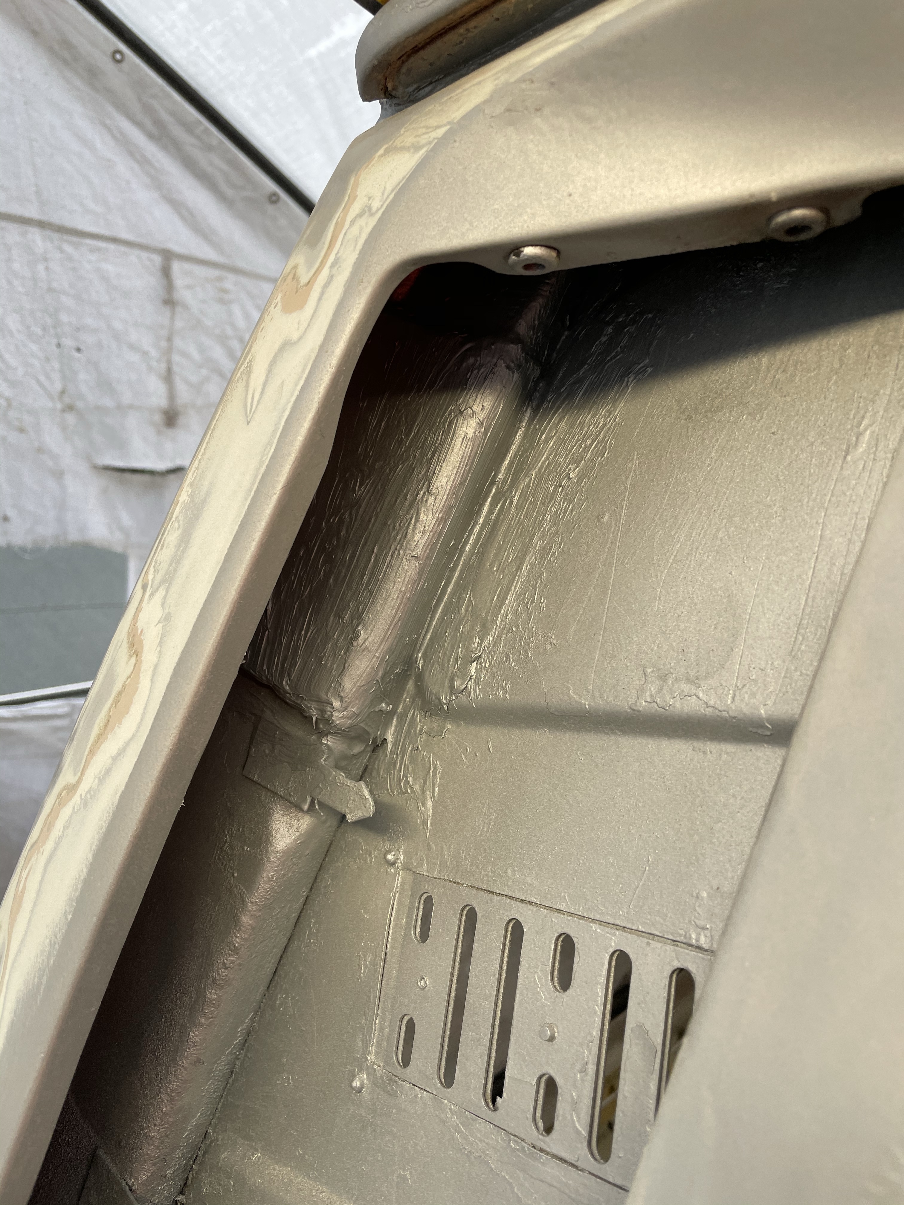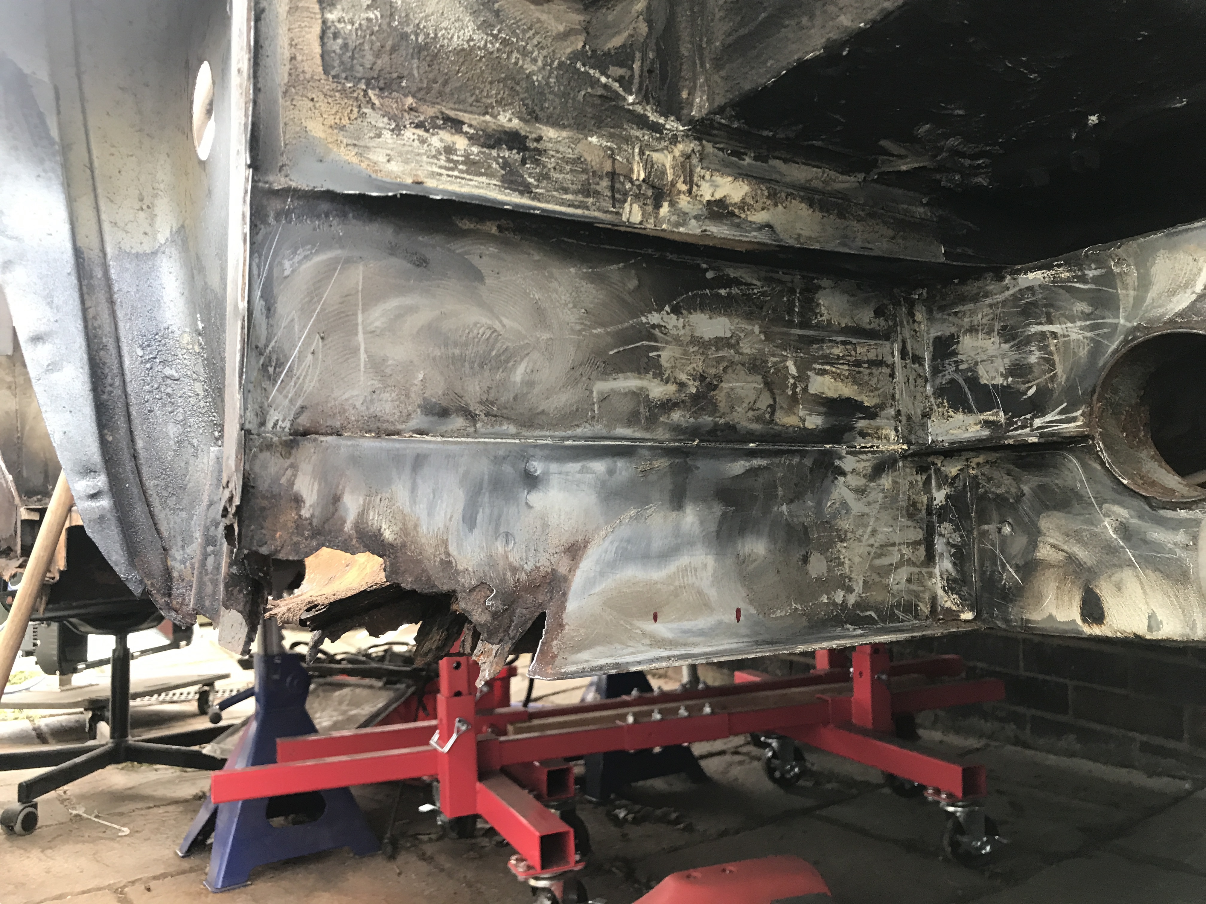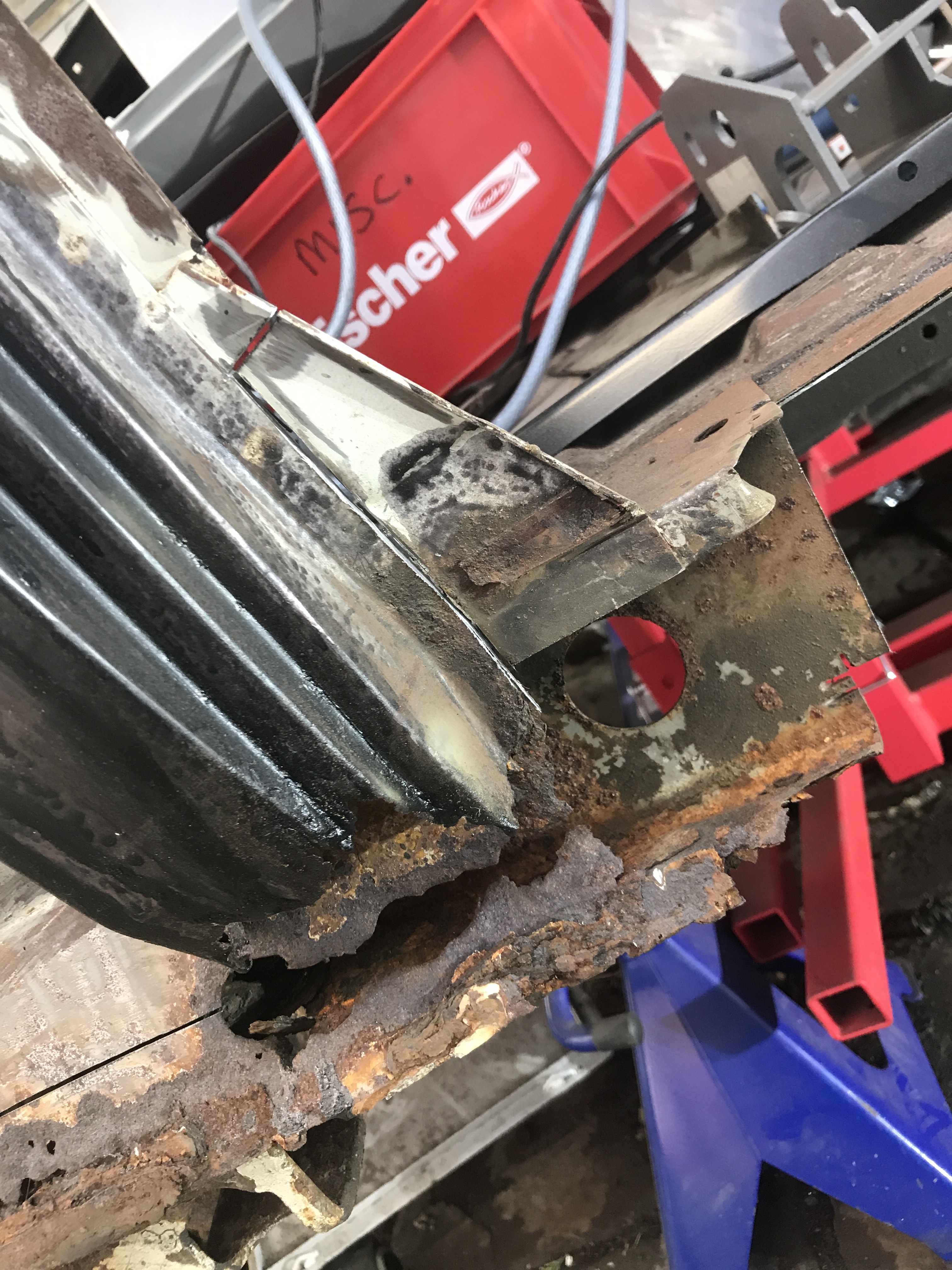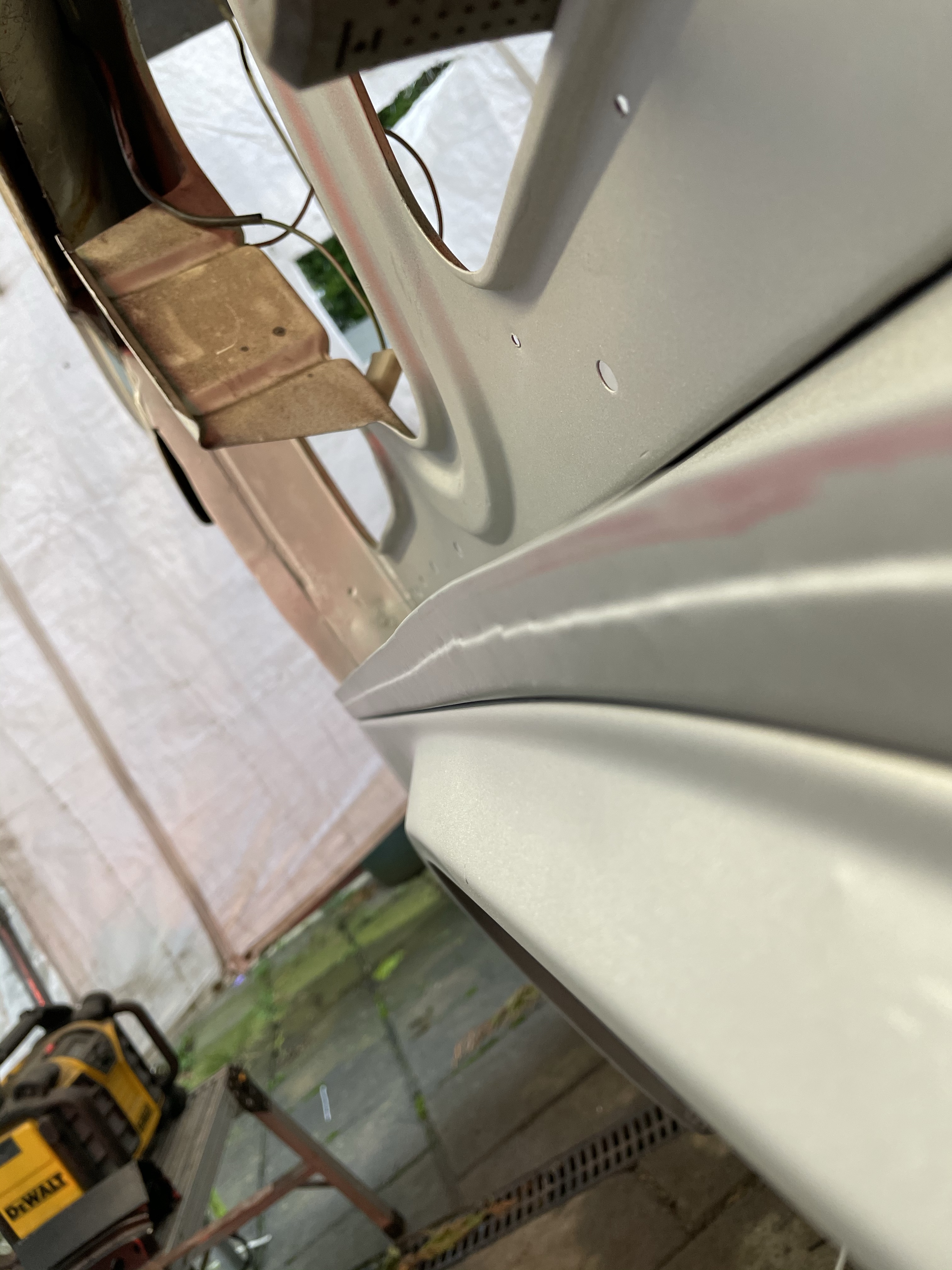 One of the first things that i noticed when i bought the van was the condition of the strut mounts on the tailgate, i could tell they were corroded but the way they are set in and the amount of filler and paint etc.. i wasn’t sure how much of it was rust / rot and how much was just the weird positioning of the brackets, so after stripping it all back and cutting out the rot i did a bit of research and lots of looking at other vans it was time i tackled mine, i found a few other suspect looking holes up towards the roof line that will get sanded back and inspected before i weld those up too. Tailgate is finally solid again in its opening and closing action and sits correct on the shut lines, also i am not worried it fall off when i open it anymore.