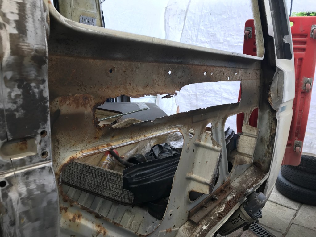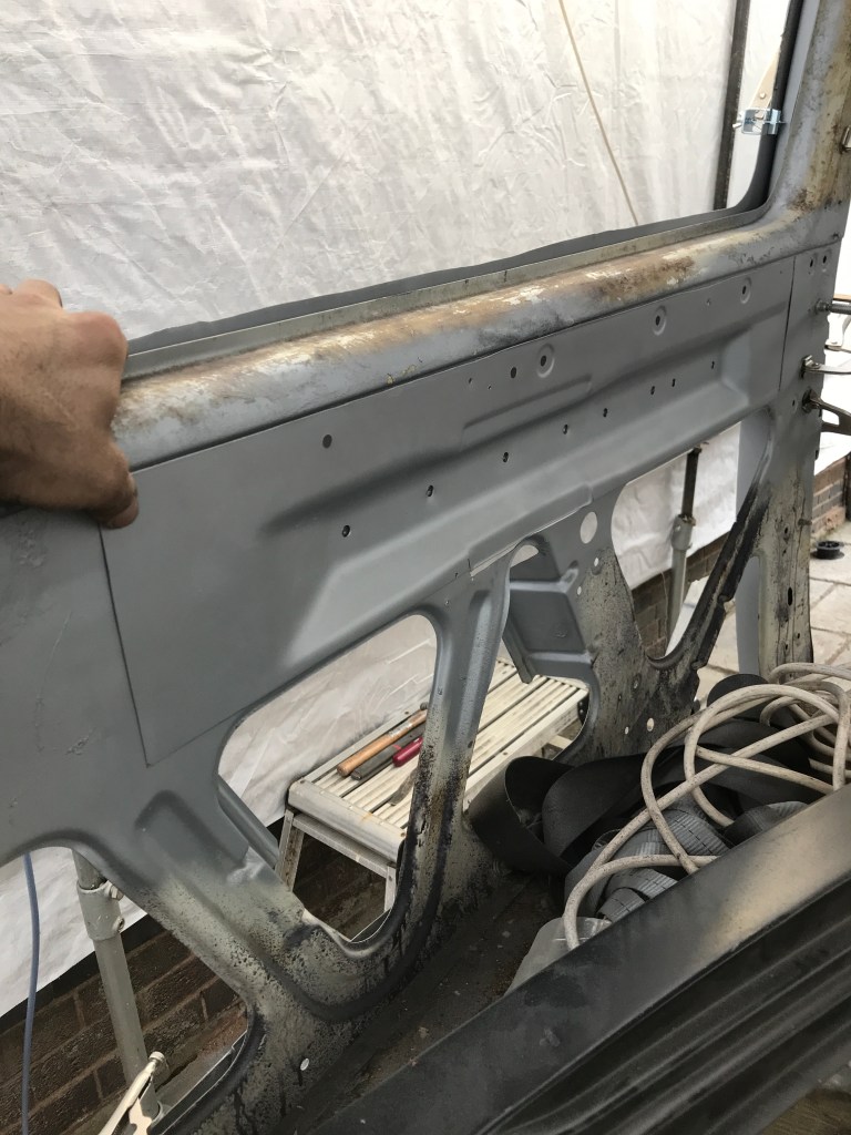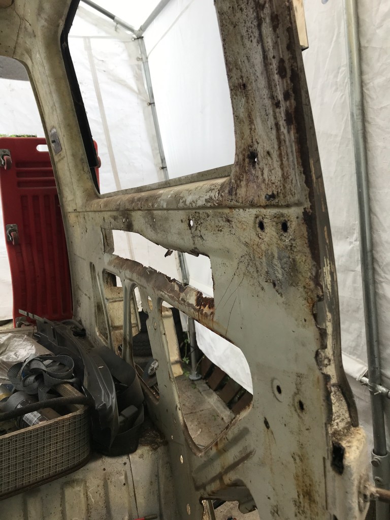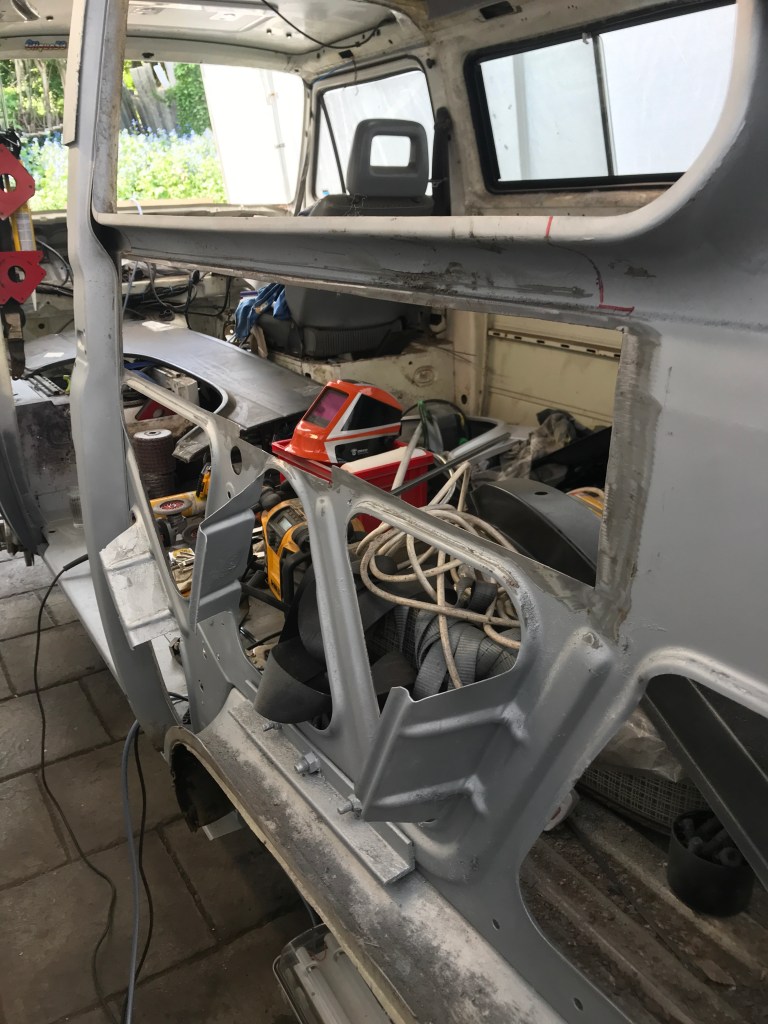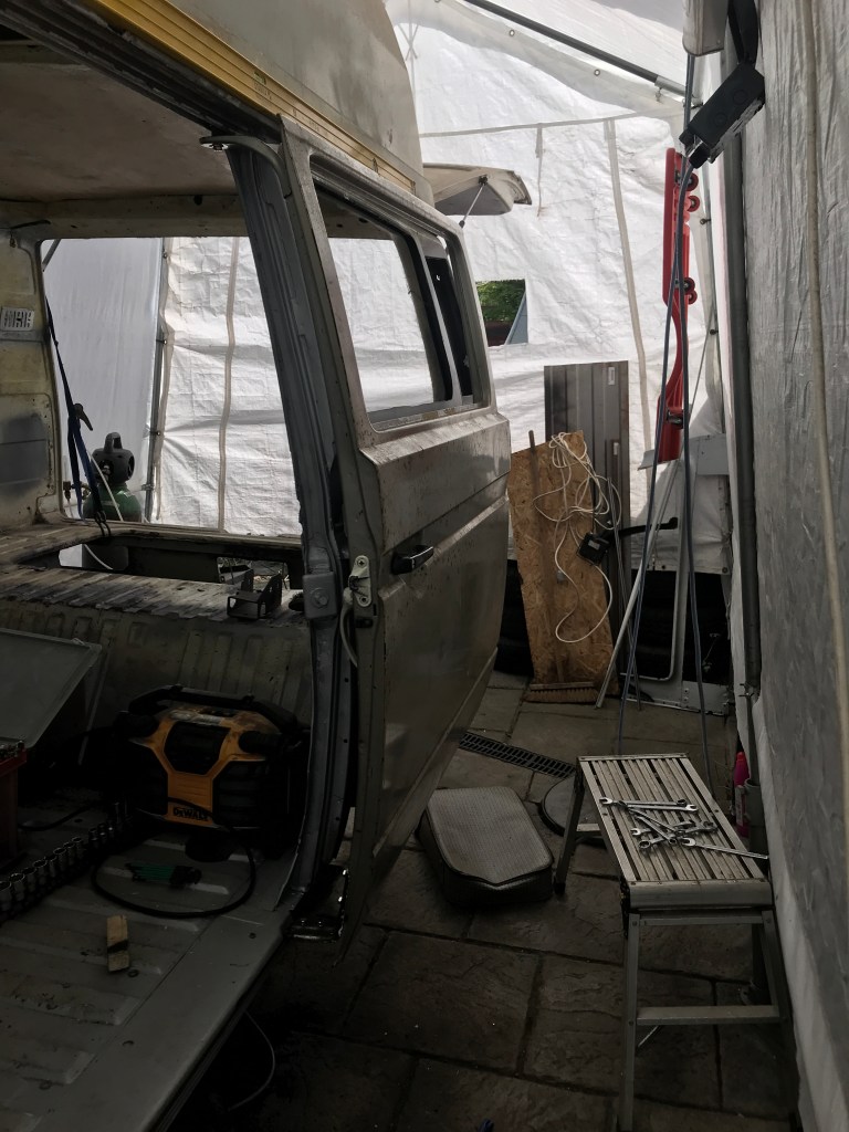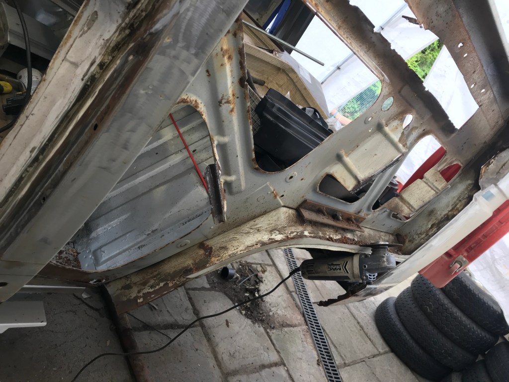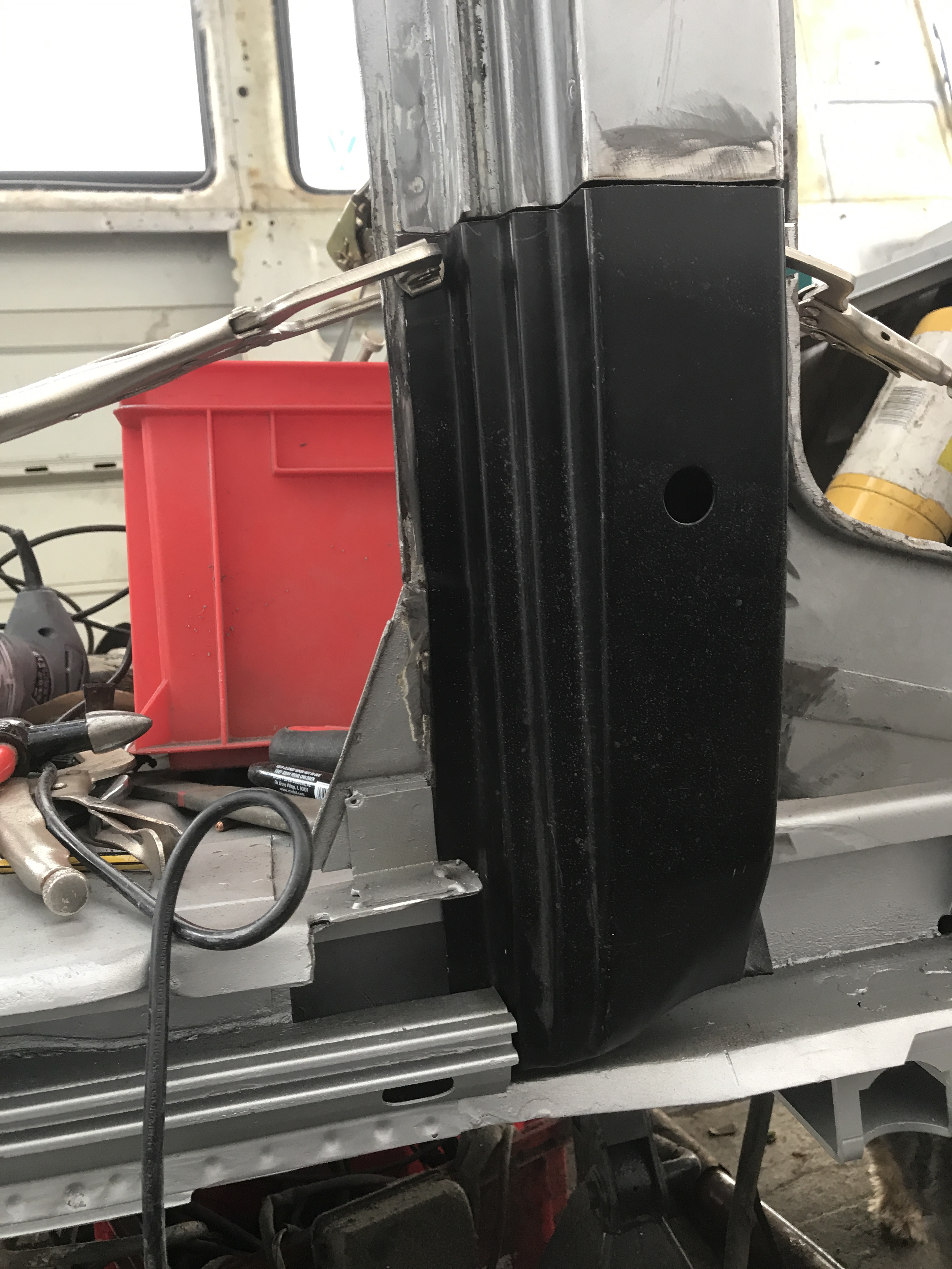 After cutting away the rust and rot it was easier to see what was needed to restore this particular area, lower C pillar was rotted away and although it will never be seen the structure was needed to fit other components to it so it had to be cut out and replaced, new panels were purchased and the job began, few fillet pieces cut and welded in and the structure started to take shape, when the basics were in place the rest kind of just slotted in around it. The arch was a bit more of a mess about, although you can buy a full arch it doesn’t come with the seams in place as per factory well at least not real seams anyway and although that may be a blessing when it comes to rust later down the line as seam rash is a big problem, i decided to try and make mine looking as per it left the factory with the correct seams etc.. that caused a few issues, number one is they don’t make a panel like that so i had to make my own out of a full panel and a rear quarter / arch off of a Doka style van, the end result even if it took ages and was way way more money than just a perfectly fine full arch was good and with a smudge of filler it looked factory correct. Cutting out the first of the rear swing arm mounts was very daunting, if the measurements were off the van could ride like a pig and tyre wear would be a massive issue not to mention it could potentially be drifting out of line a lot when driving, so after speaking to a couple of people and one restorer who actually does this for a living!!! the practiced method of lining them up through existing bolt holes in the inner area and brake line mounting points was used and as i checked the measurements i could get the mount within a tolerance of 1mm which i think will be absolutely fine, potentially if needed the swing arm / position can be adjusted when setting wheel alignment with the oval shaped bolt holes. time will tell on that part i suppose.