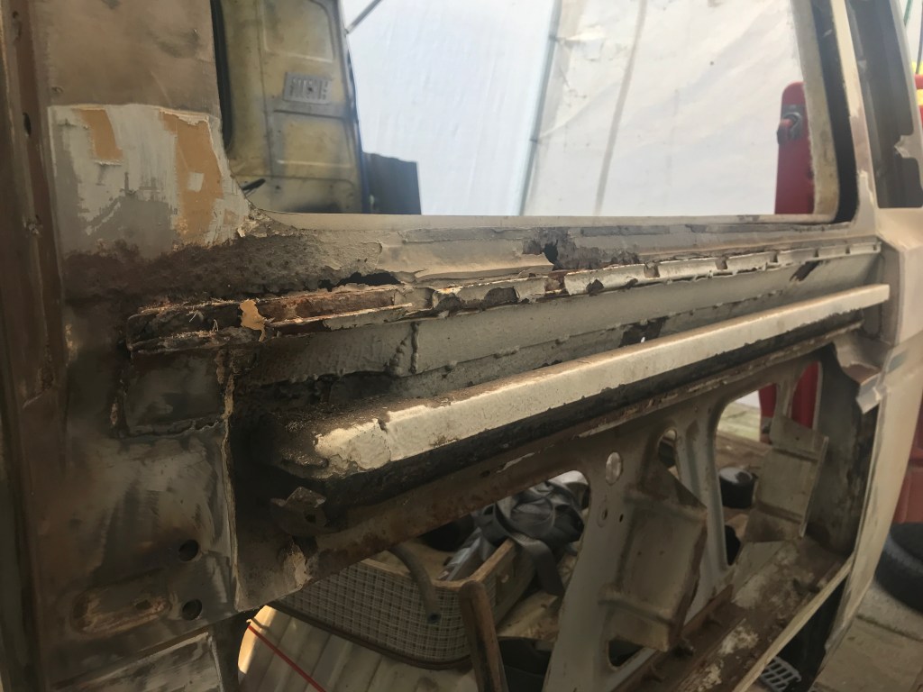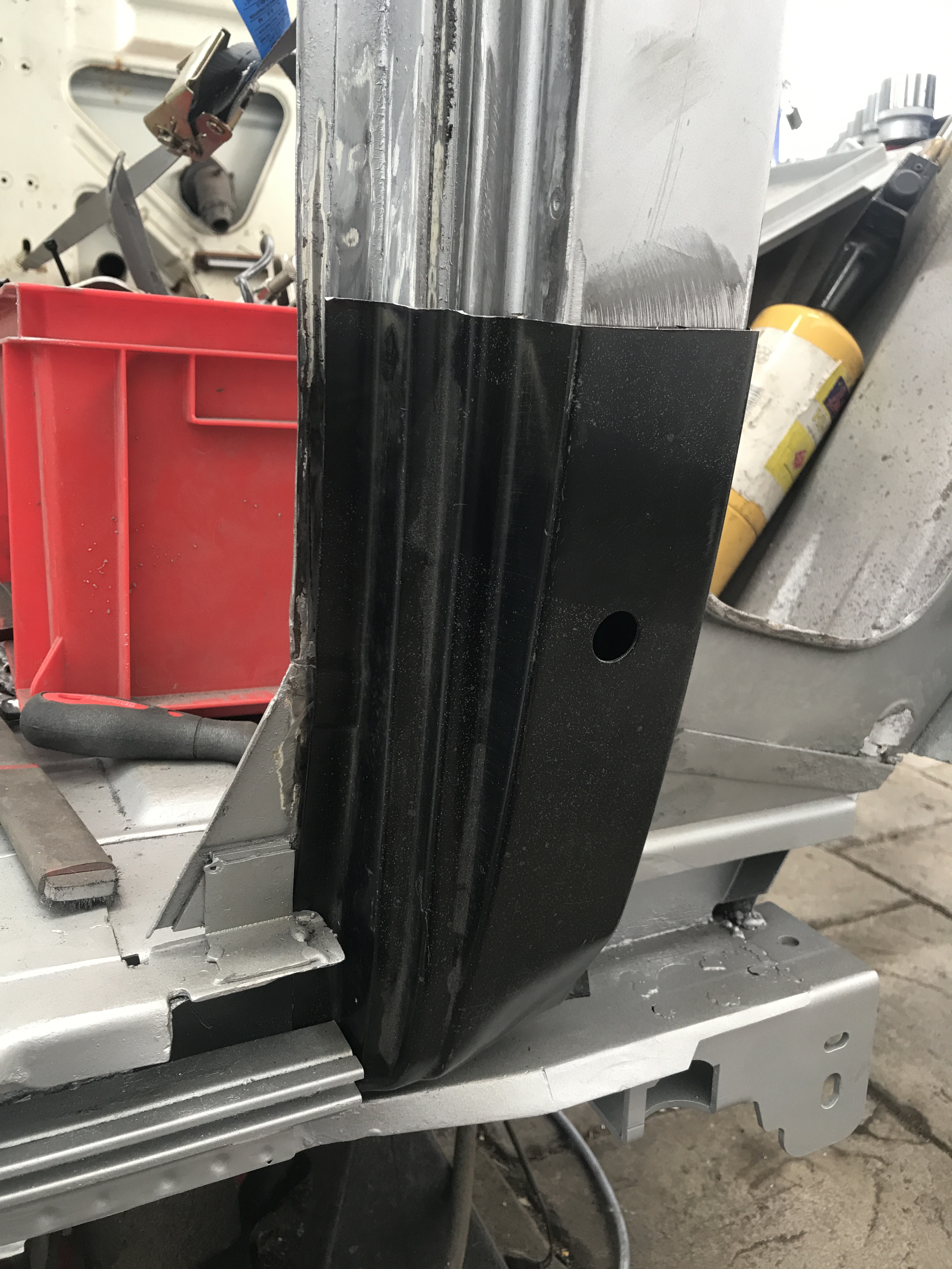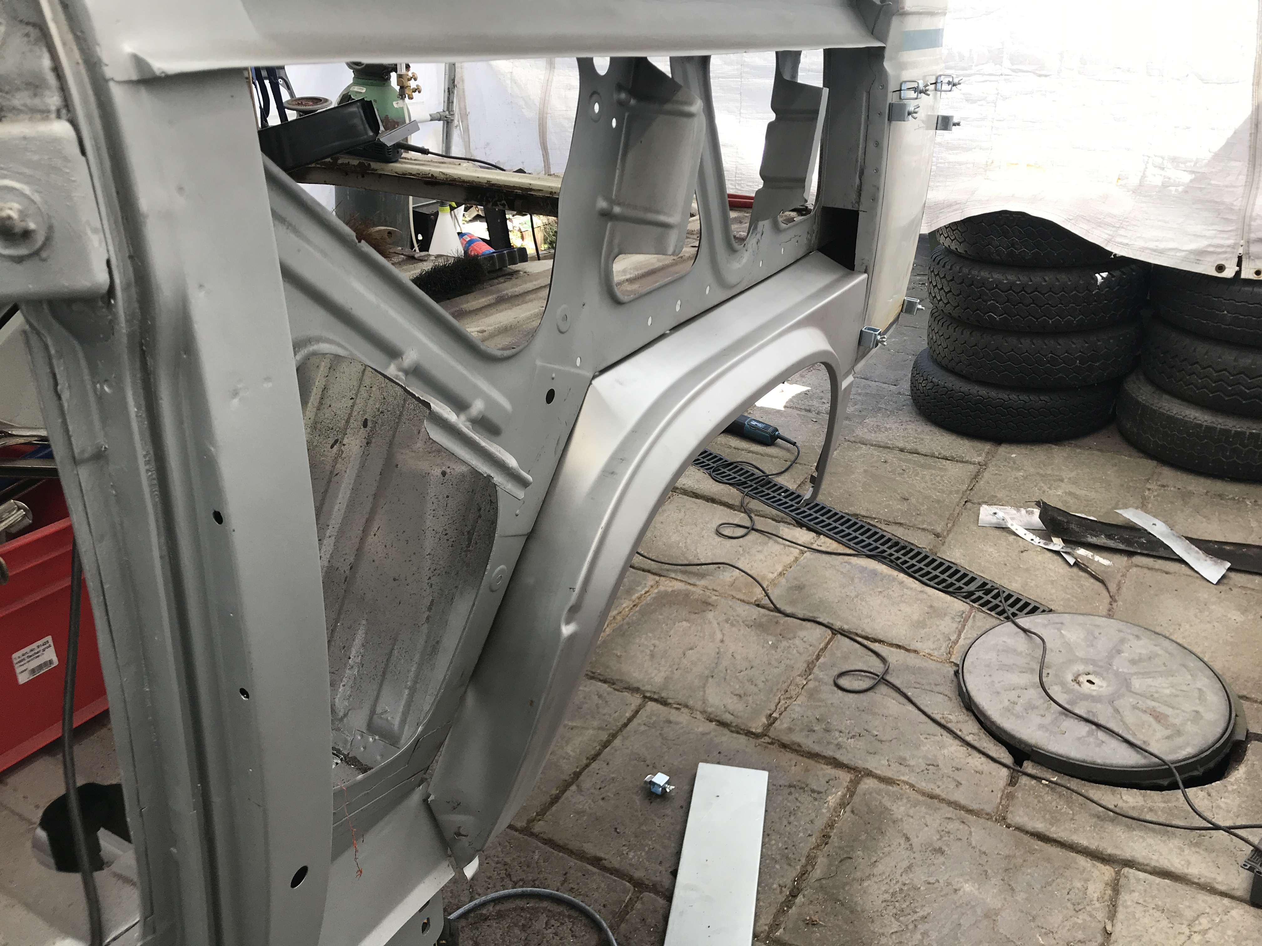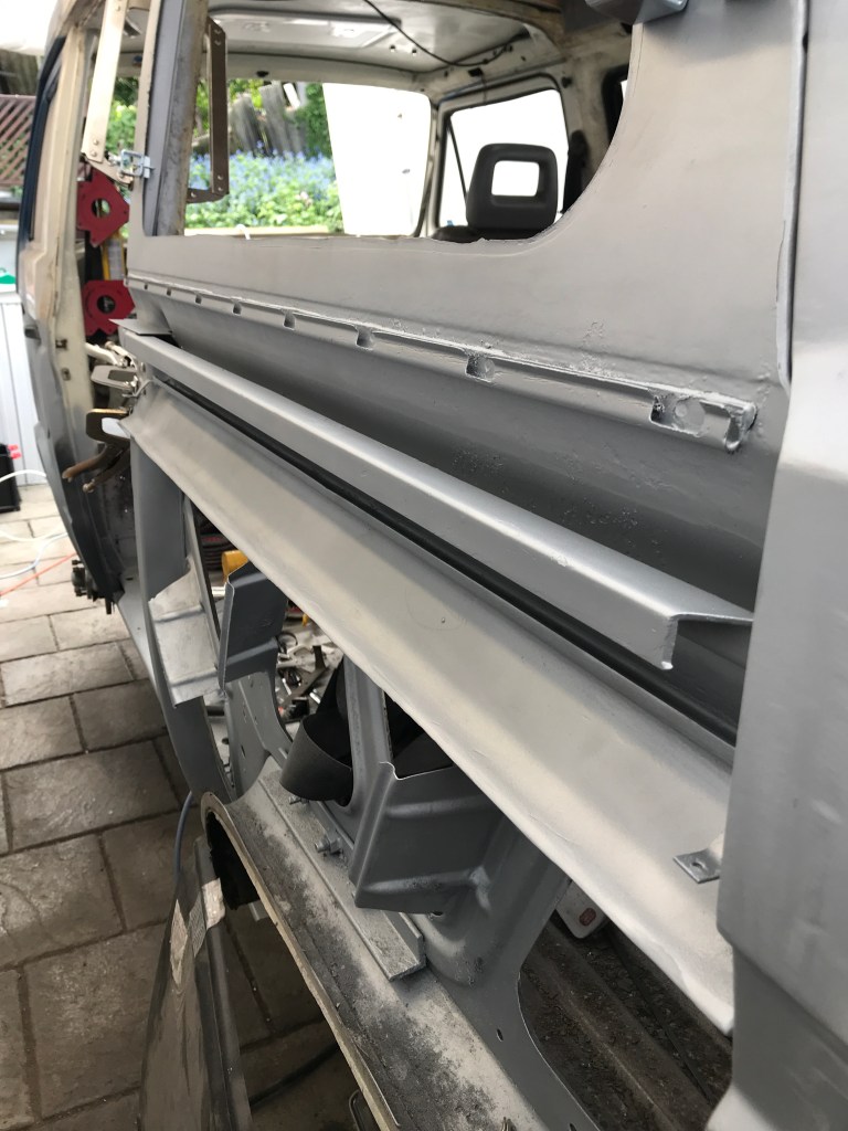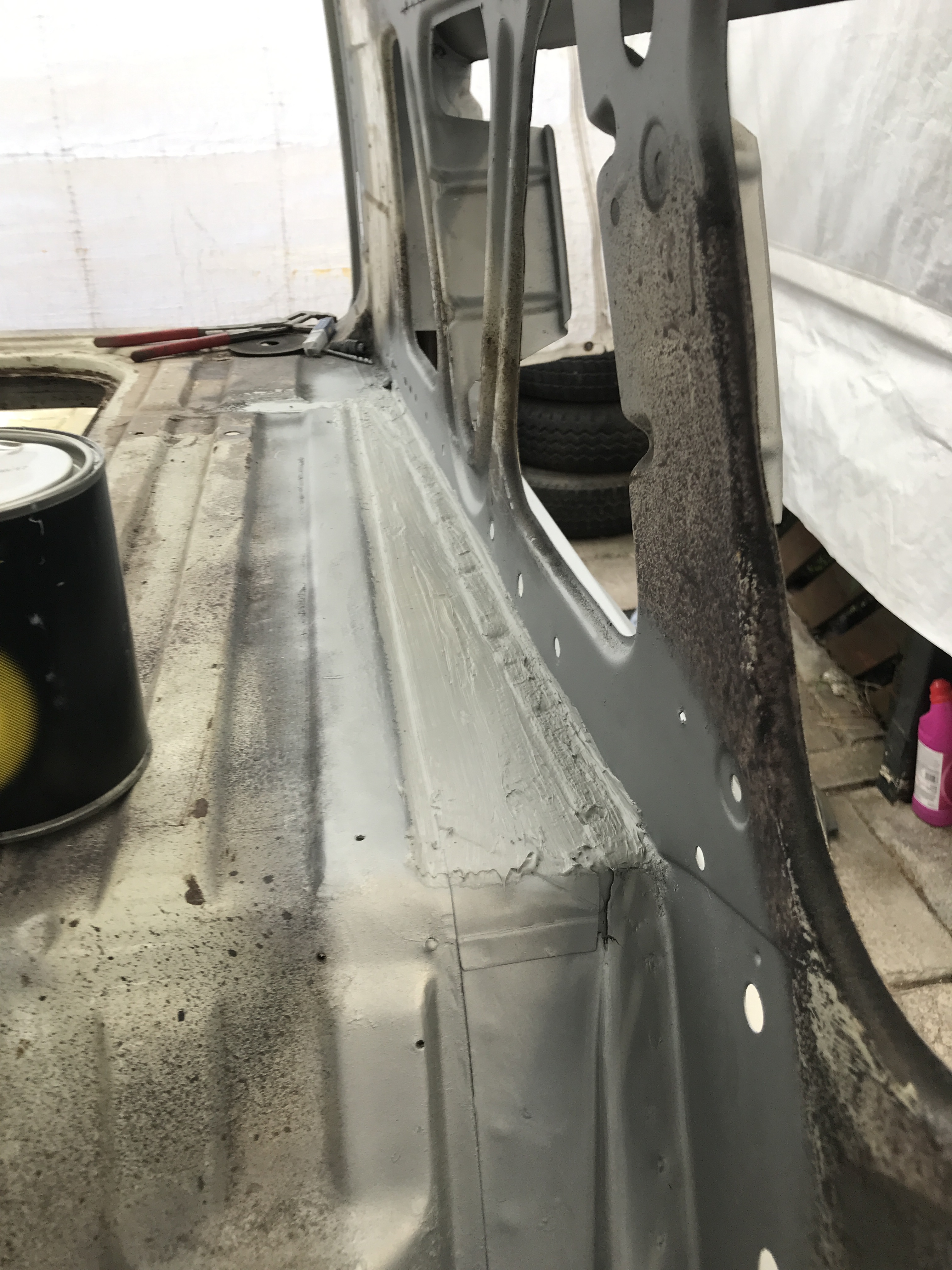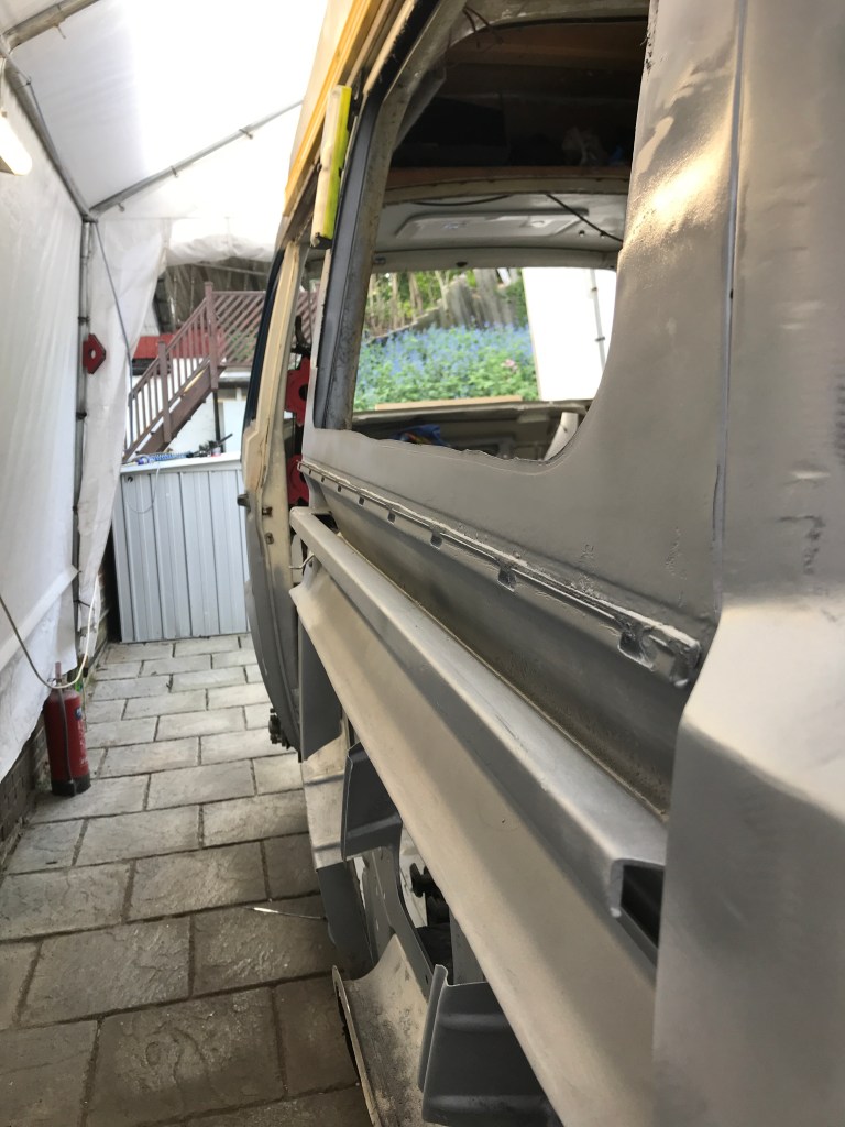 After cutting away the rust and rot it was easier to see what was needed to restore this particular area, lower C pillar was rotted away and although it will never be seen the structure was needed to fit other components to it so it had to be cut out and replaced, new panels were purchased and the job began, few fillet pieces cut and welded in and the structure started to take shape, when the basics were in place the rest kind of just slotted in around it. The arch was a bit more of a mess about, although you can buy a full arch it doesn’t come with the seams in place as per factory well at least not real seams anyway and although that may be a blessing when it comes to rust later down the line as seam rash is a big problem, i decided to try and make mine looking as per it left the factory with the correct seams etc.. that caused a few issues, number one is they don’t make a panel like that so i had to make my own out of a full panel and a rear quarter / arch off of a Doka style van, the end result even if it took ages and was way way more money than just a perfectly fine full arch was good and with a smudge of filler it looked factory correct. Cutting out the first of the rear swing arm mounts was very daunting, if the measurements were off the van could ride like a pig and tyre wear would be a massive issue not to mention it could potentially be drifting out of line a lot when driving, so after speaking to a couple of people and one restorer who actually does this for a living!!! the practiced method of lining them up through existing bolt holes in the inner area and brake line mounting points was used and as i checked the measurements i could get the mount within a tolerance of 1mm which i think will be absolutely fine, potentially if needed the swing arm / position can be adjusted when setting wheel alignment with the oval shaped bolt holes. time will tell on that part i suppose.