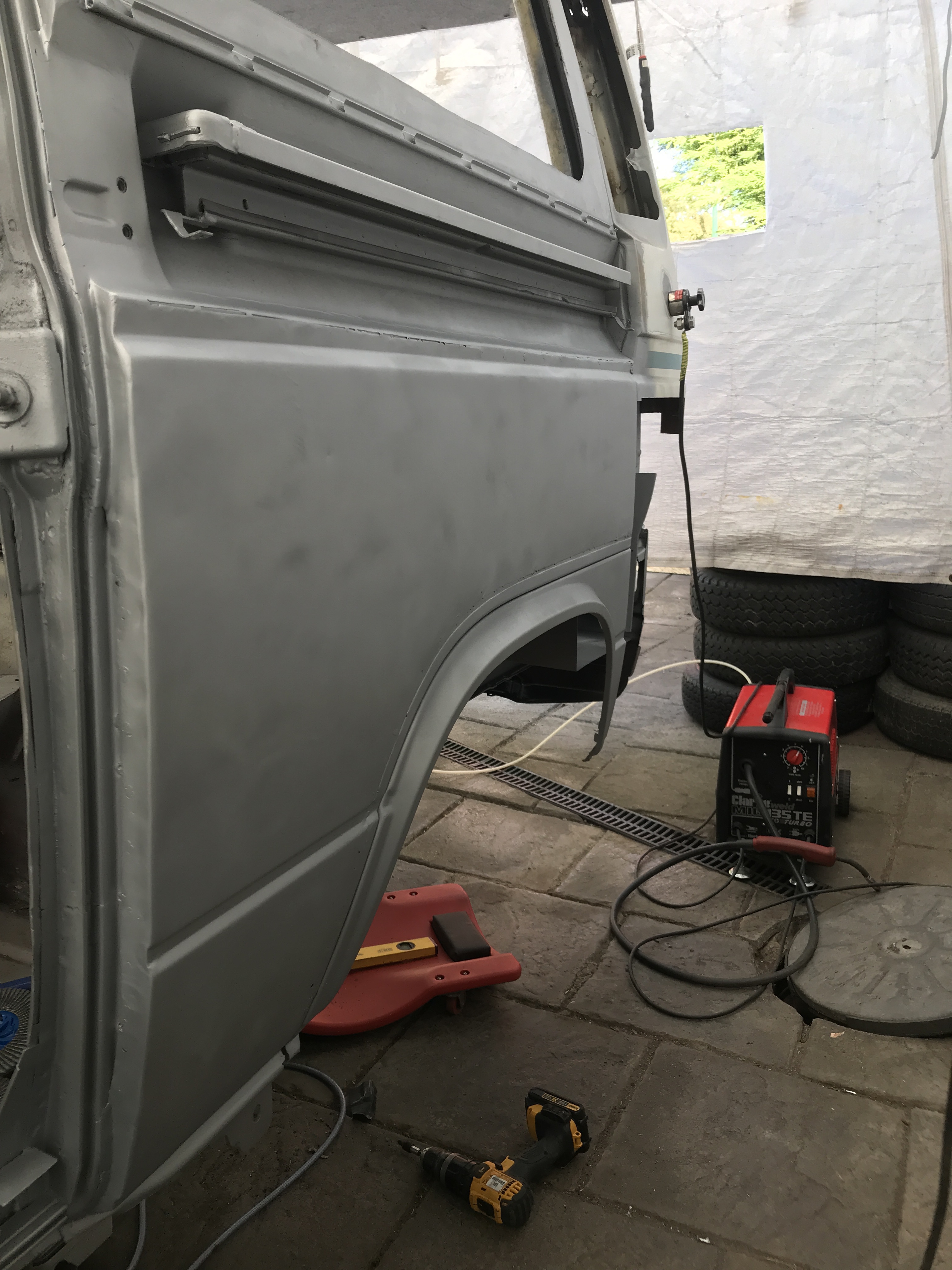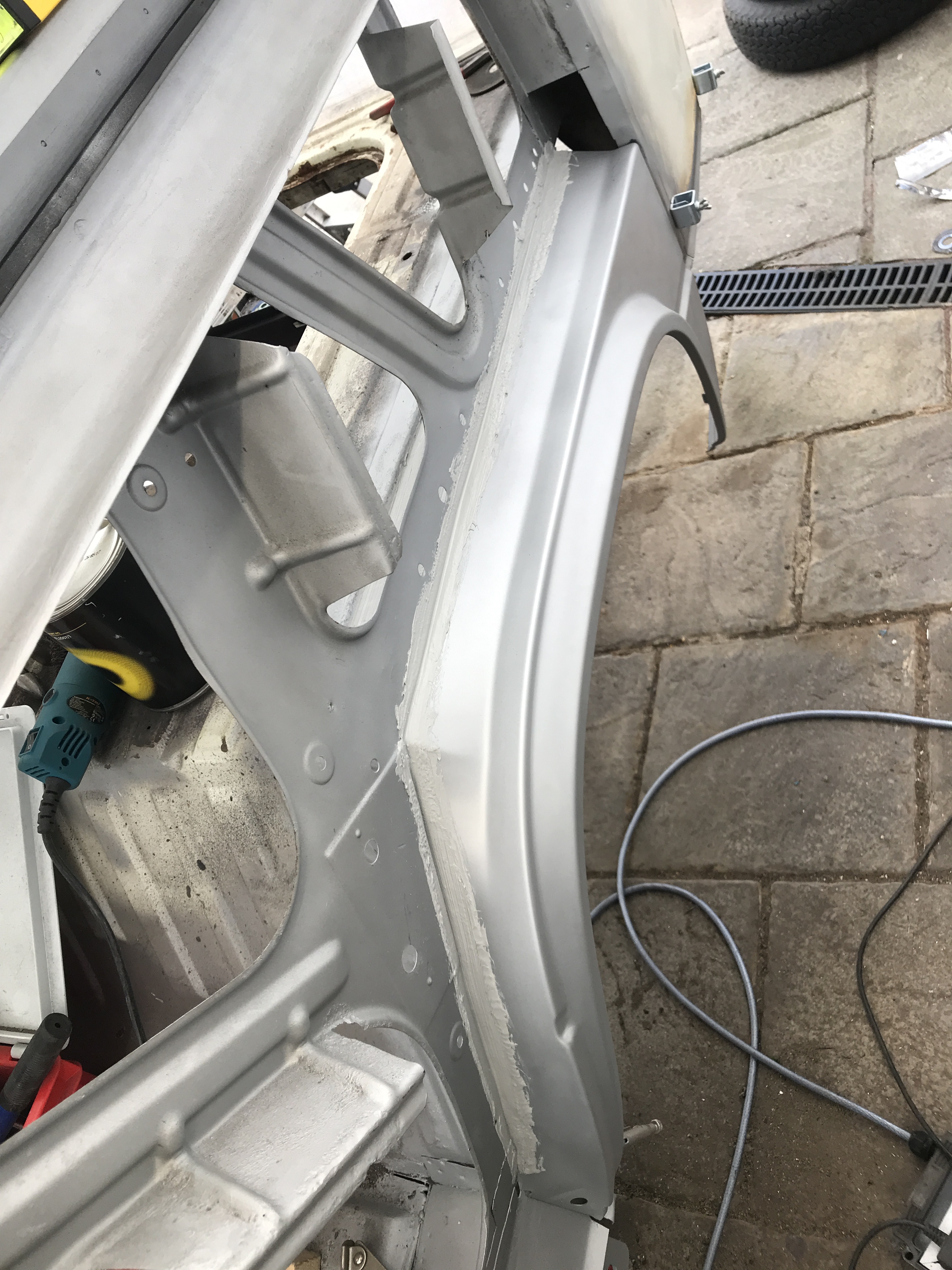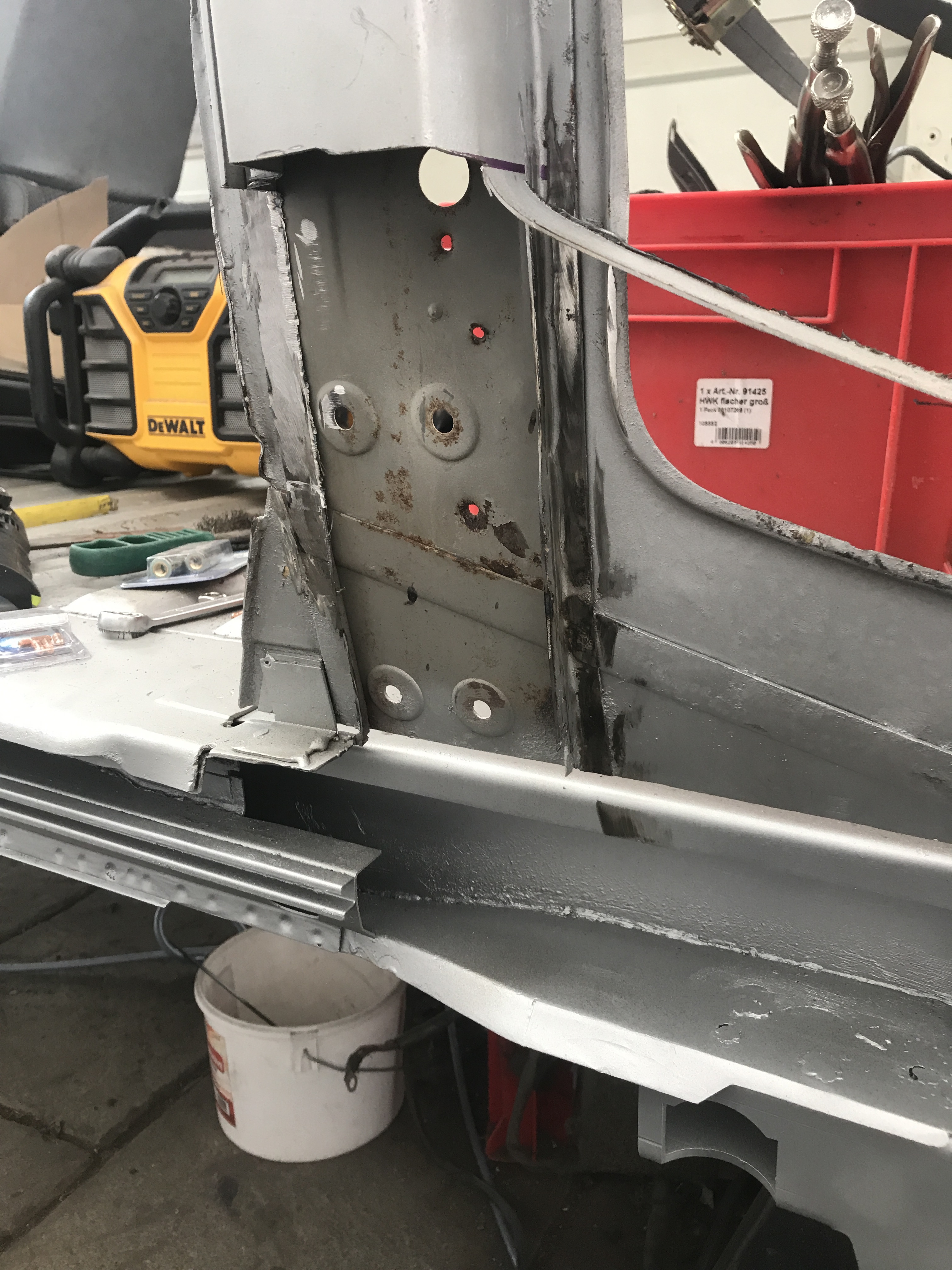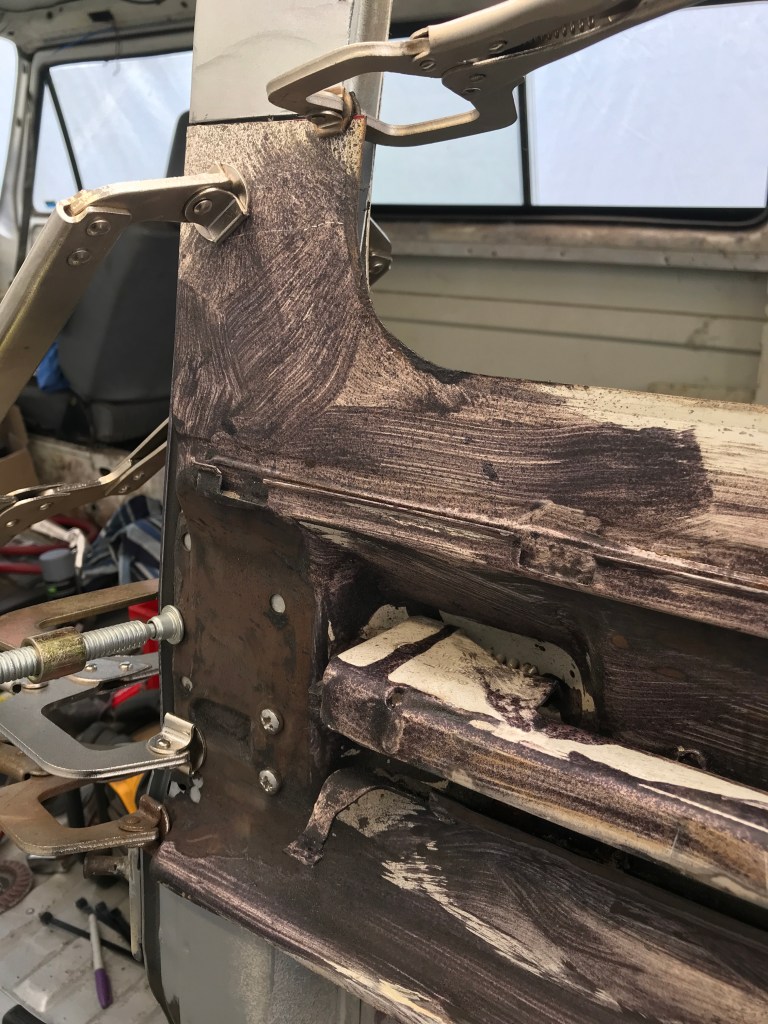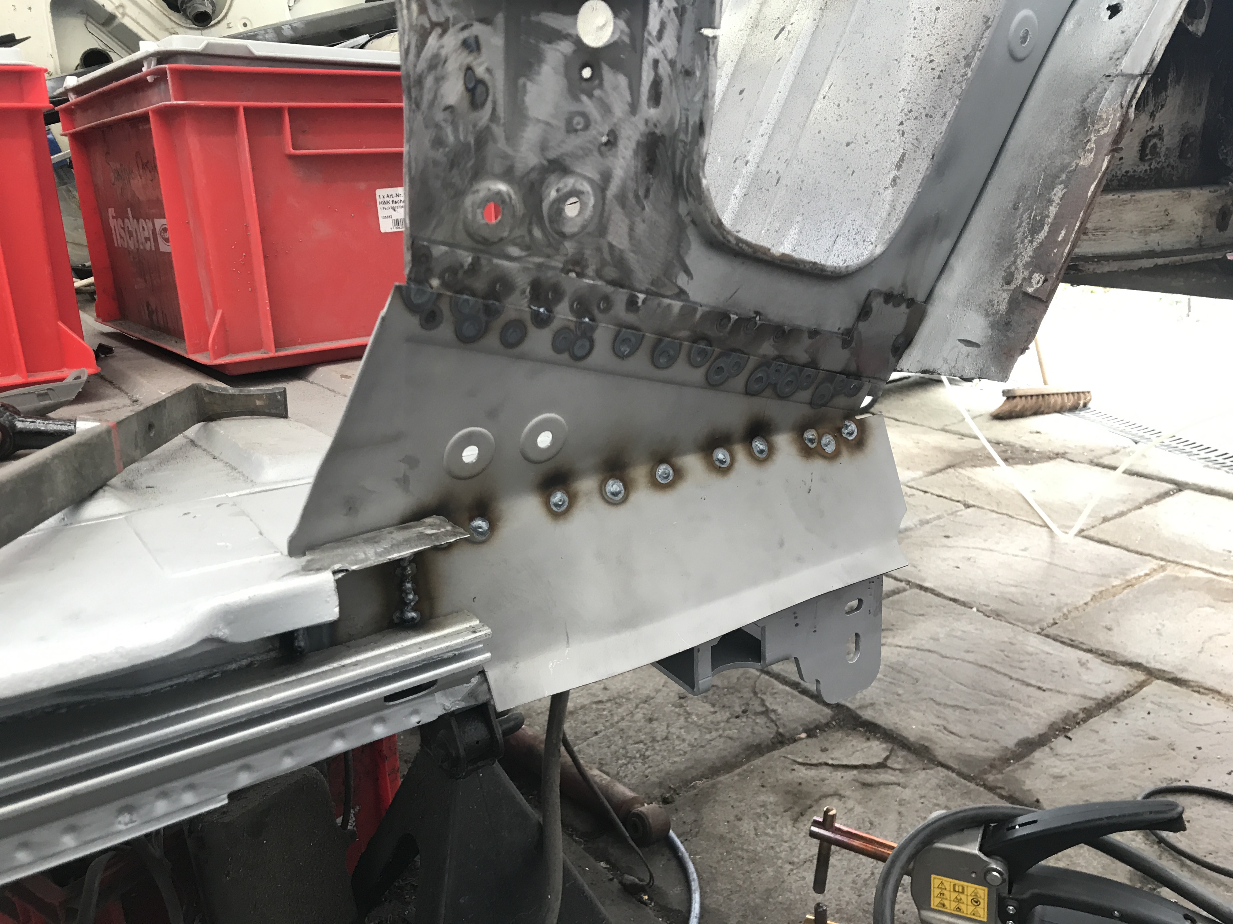 After cutting away the rust and rot it was easier to see what was needed to restore this particular area, lower C pillar was rotted away and although it will never be seen the structure was needed to fit other components to it so it had to be cut out and replaced, new panels were purchased and the job began, few fillet pieces cut and welded in and the structure started to take shape, when the basics were in place the rest kind of just slotted in around it. The arch was a bit more of a mess about, although you can buy a full arch it doesn’t come with the seams in place as per factory well at least not real seams anyway and although that may be a blessing when it comes to rust later down the line as seam rash is a big problem, i decided to try and make mine looking as per it left the factory with the correct seams etc.. that caused a few issues, number one is they don’t make a panel like that so i had to make my own out of a full panel and a rear quarter / arch off of a Doka style van, the end result even if it took ages and was way way more money than just a perfectly fine full arch was good and with a smudge of filler it looked factory correct. Cutting out the first of the rear swing arm mounts was very daunting, if the measurements were off the van could ride like a pig and tyre wear would be a massive issue not to mention it could potentially be drifting out of line a lot when driving, so after speaking to a couple of people and one restorer who actually does this for a living!!! the practiced method of lining them up through existing bolt holes in the inner area and brake line mounting points was used and as i checked the measurements i could get the mount within a tolerance of 1mm which i think will be absolutely fine, potentially if needed the swing arm / position can be adjusted when setting wheel alignment with the oval shaped bolt holes. time will tell on that part i suppose.