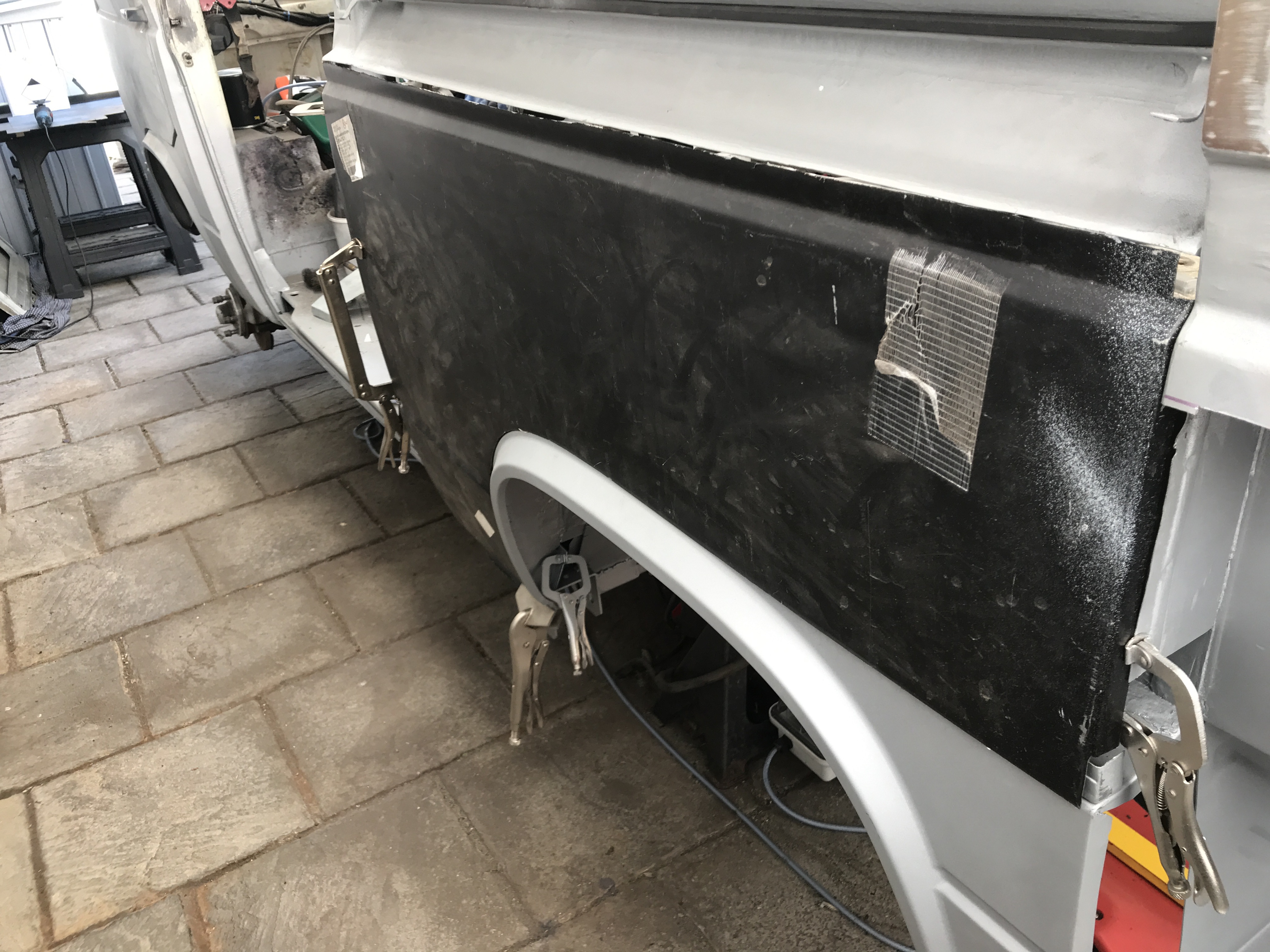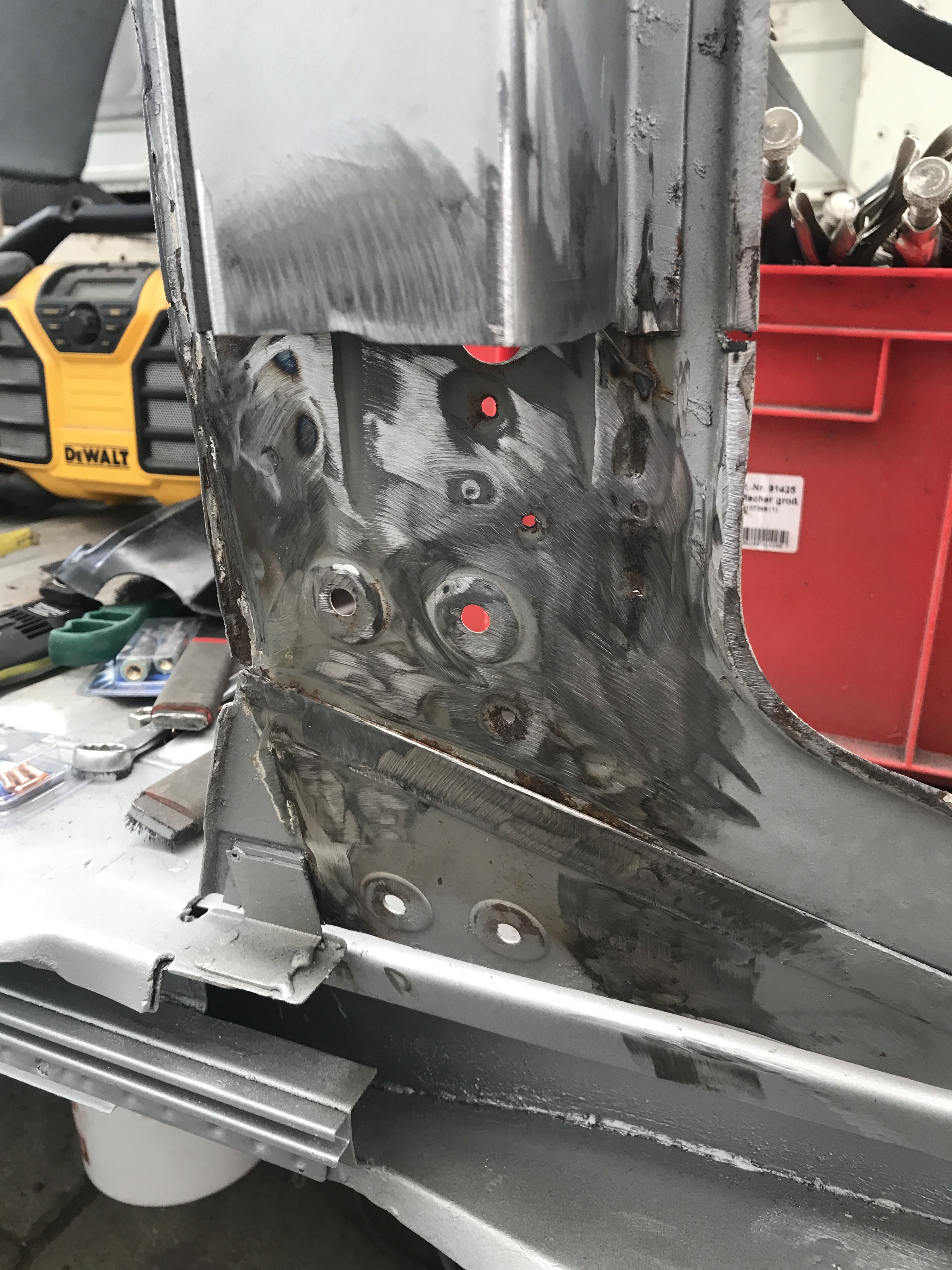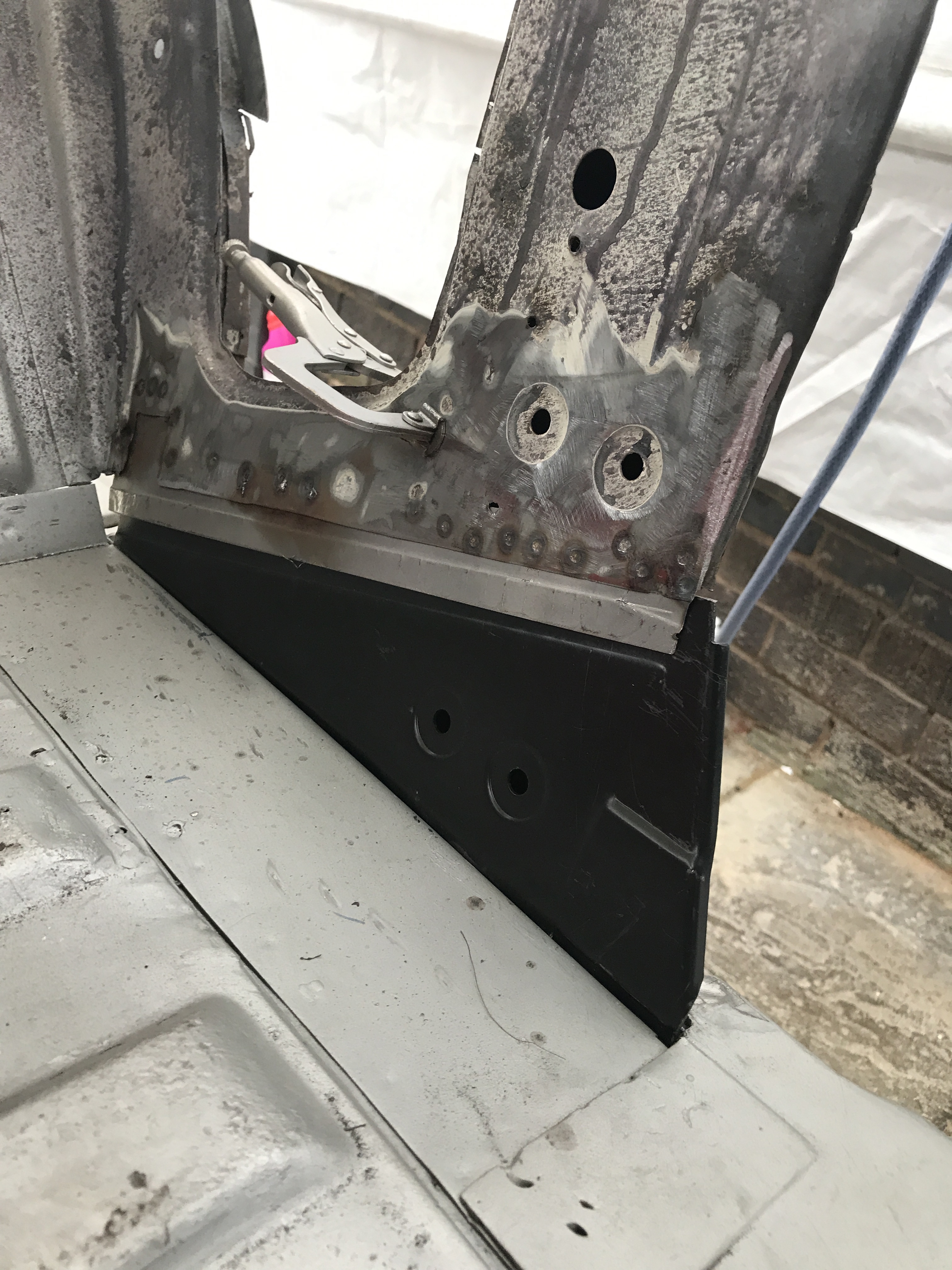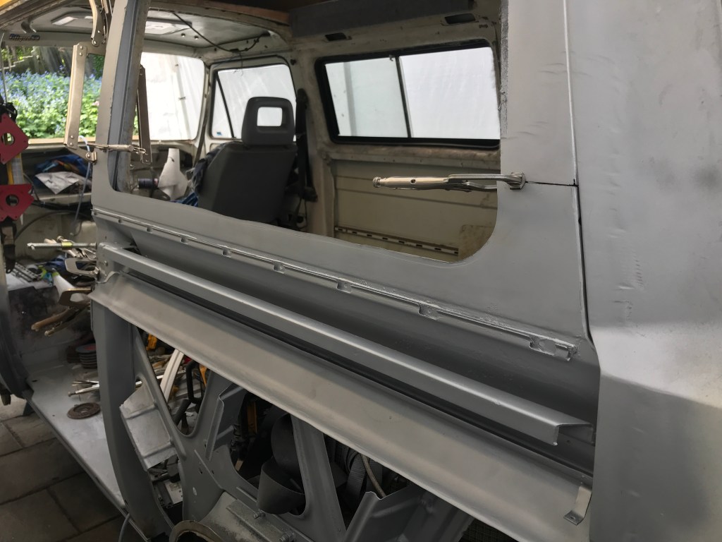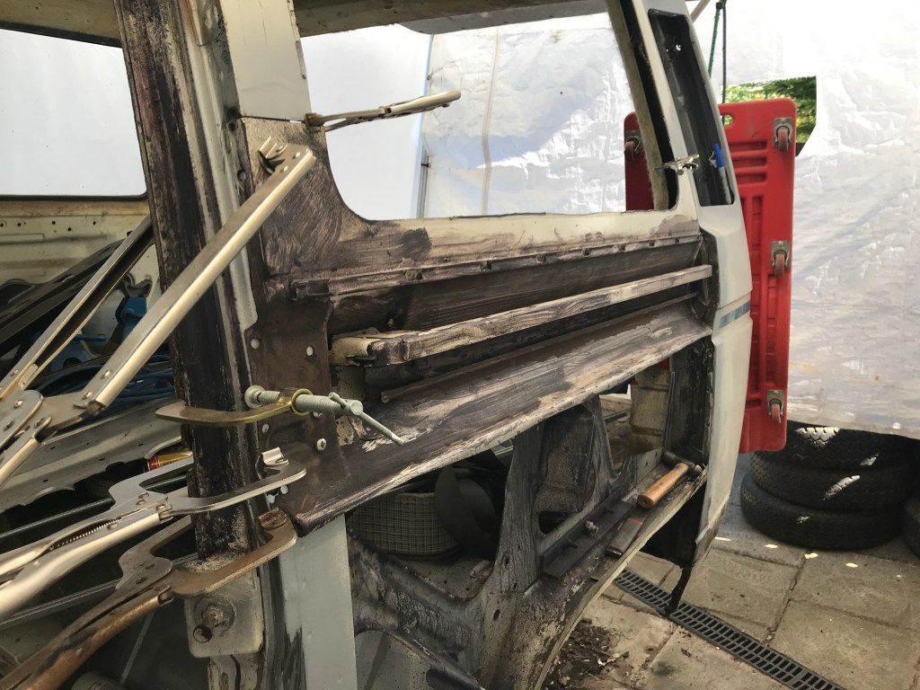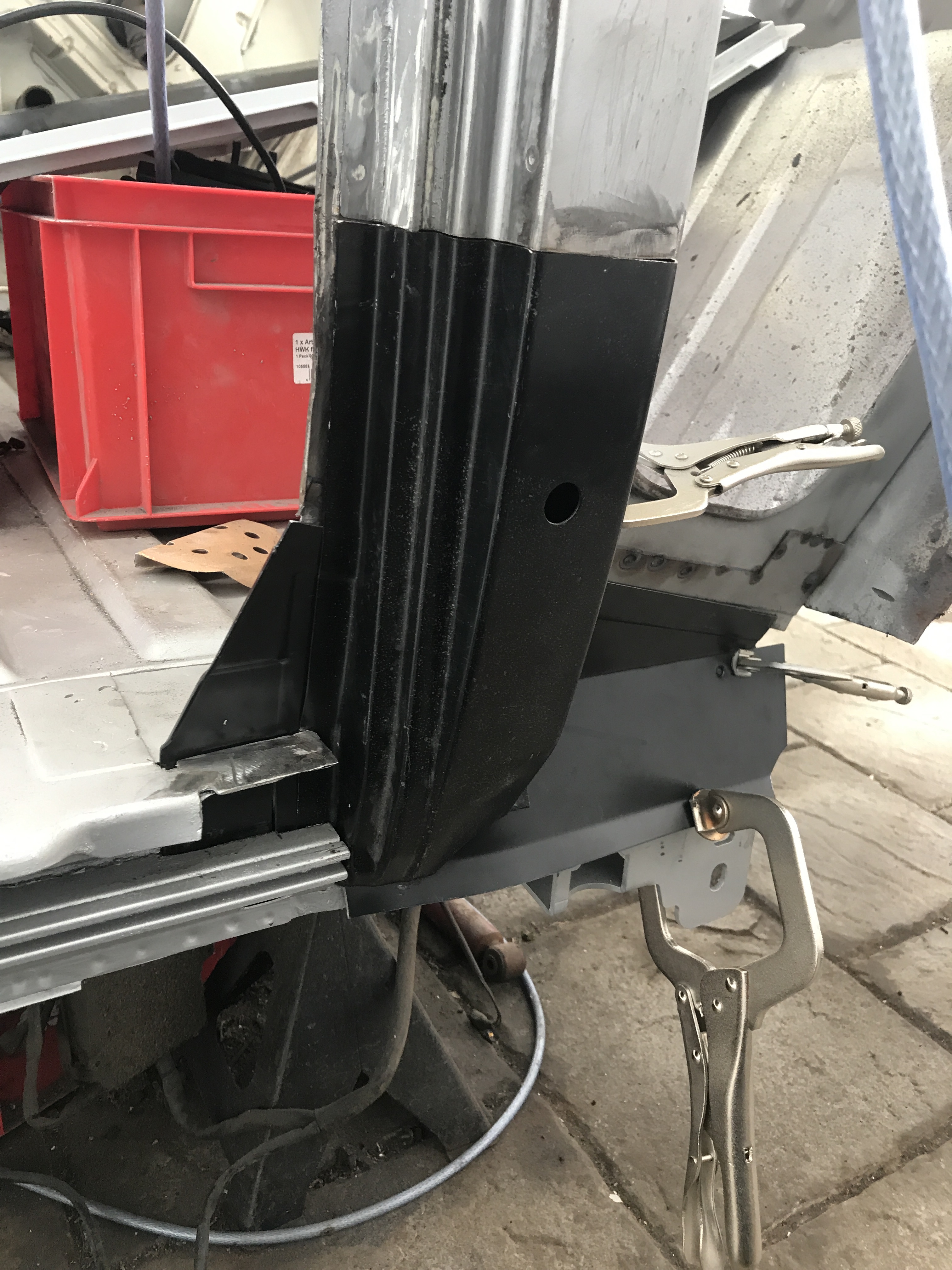 After cutting away the rust and rot it was easier to see what was needed to restore this particular area, lower C pillar was rotted away and although it will never be seen the structure was needed to fit other components to it so it had to be cut out and replaced, new panels were purchased and the job began, few fillet pieces cut and welded in and the structure started to take shape, when the basics were in place the rest kind of just slotted in around it. The arch was a bit more of a mess about, although you can buy a full arch it doesn’t come with the seams in place as per factory well at least not real seams anyway and although that may be a blessing when it comes to rust later down the line as seam rash is a big problem, i decided to try and make mine looking as per it left the factory with the correct seams etc.. that caused a few issues, number one is they don’t make a panel like that so i had to make my own out of a full panel and a rear quarter / arch off of a Doka style van, the end result even if it took ages and was way way more money than just a perfectly fine full arch was good and with a smudge of filler it looked factory correct. Cutting out the first of the rear swing arm mounts was very daunting, if the measurements were off the van could ride like a pig and tyre wear would be a massive issue not to mention it could potentially be drifting out of line a lot when driving, so after speaking to a couple of people and one restorer who actually does this for a living!!! the practiced method of lining them up through existing bolt holes in the inner area and brake line mounting points was used and as i checked the measurements i could get the mount within a tolerance of 1mm which i think will be absolutely fine, potentially if needed the swing arm / position can be adjusted when setting wheel alignment with the oval shaped bolt holes. time will tell on that part i suppose.