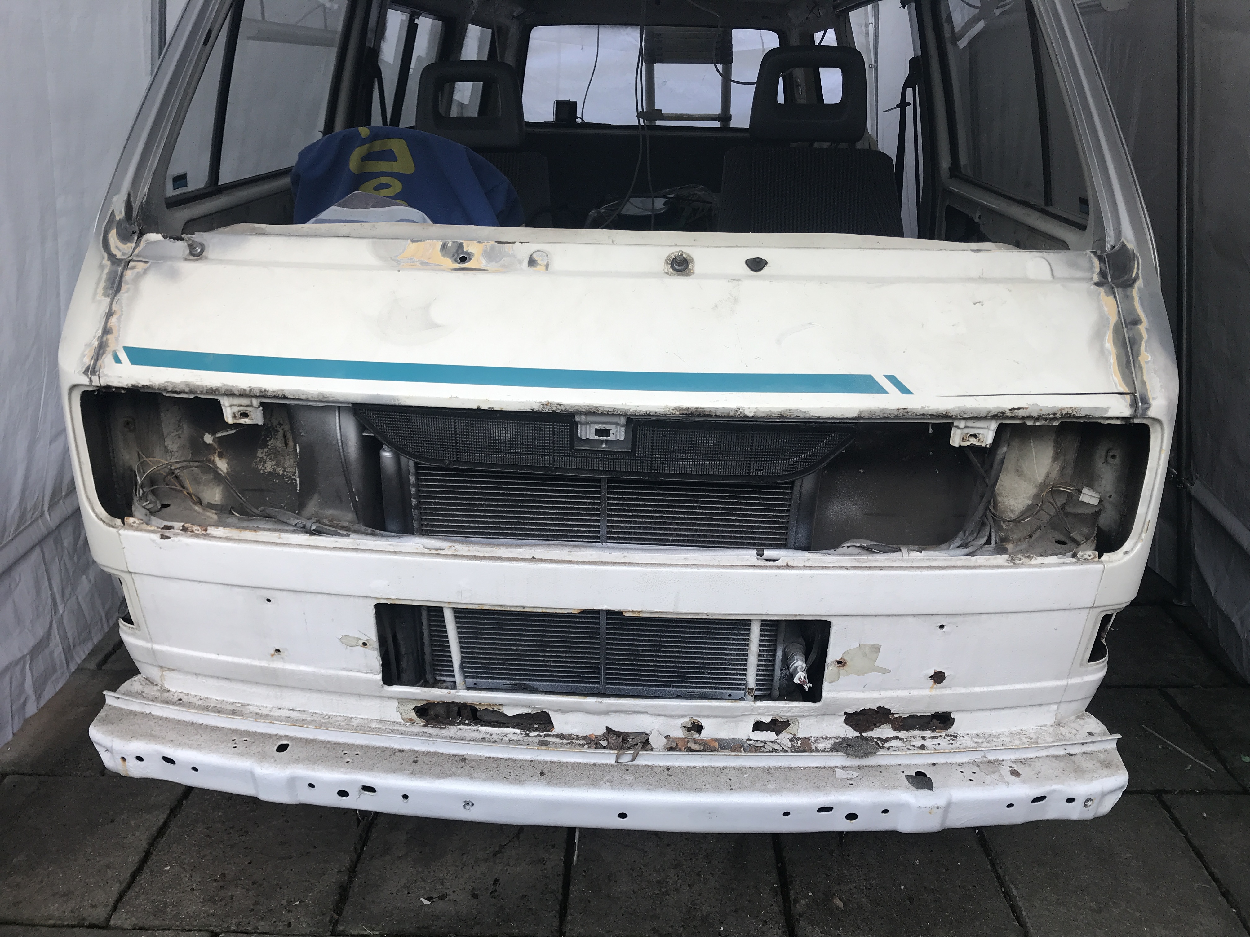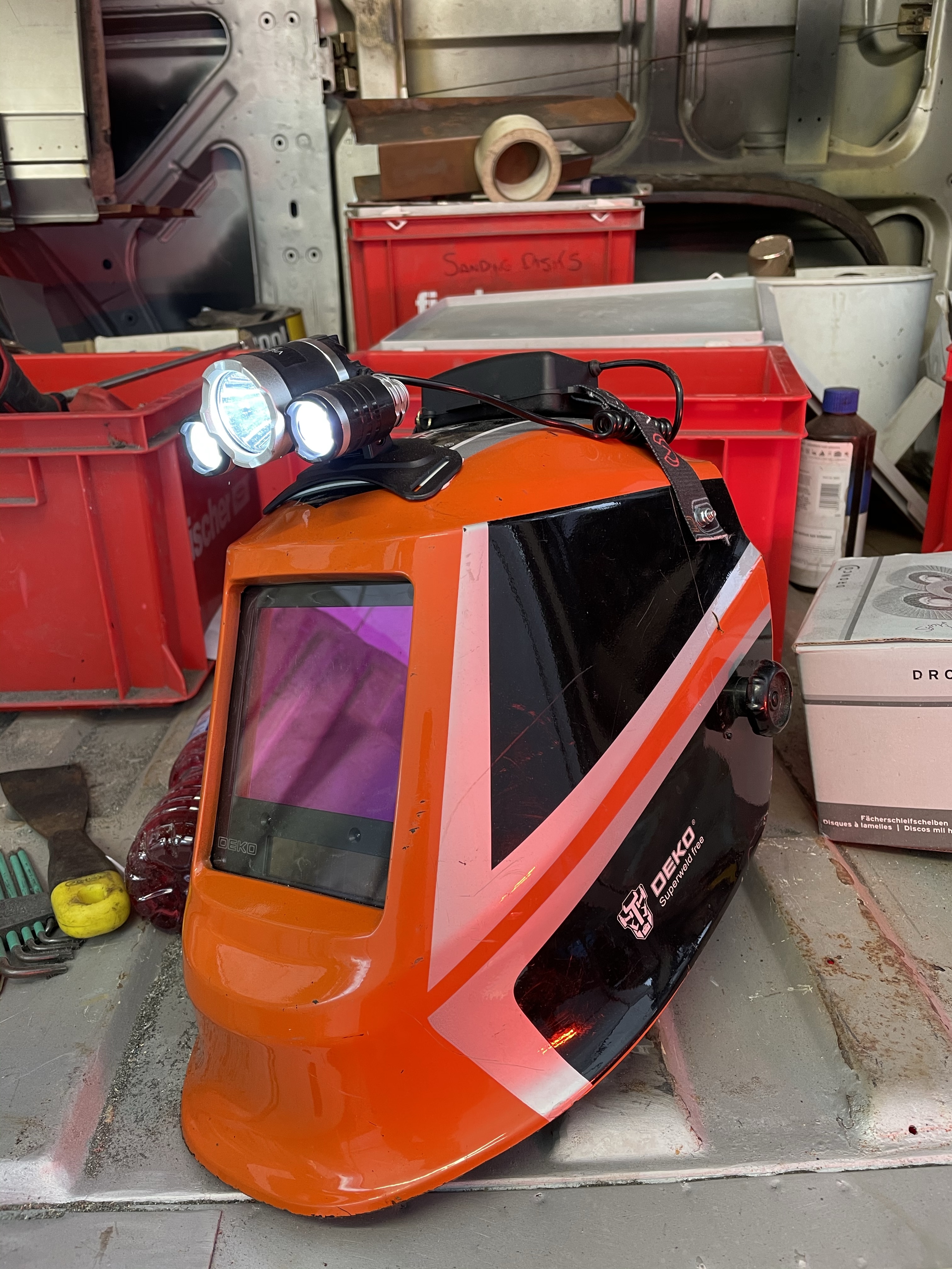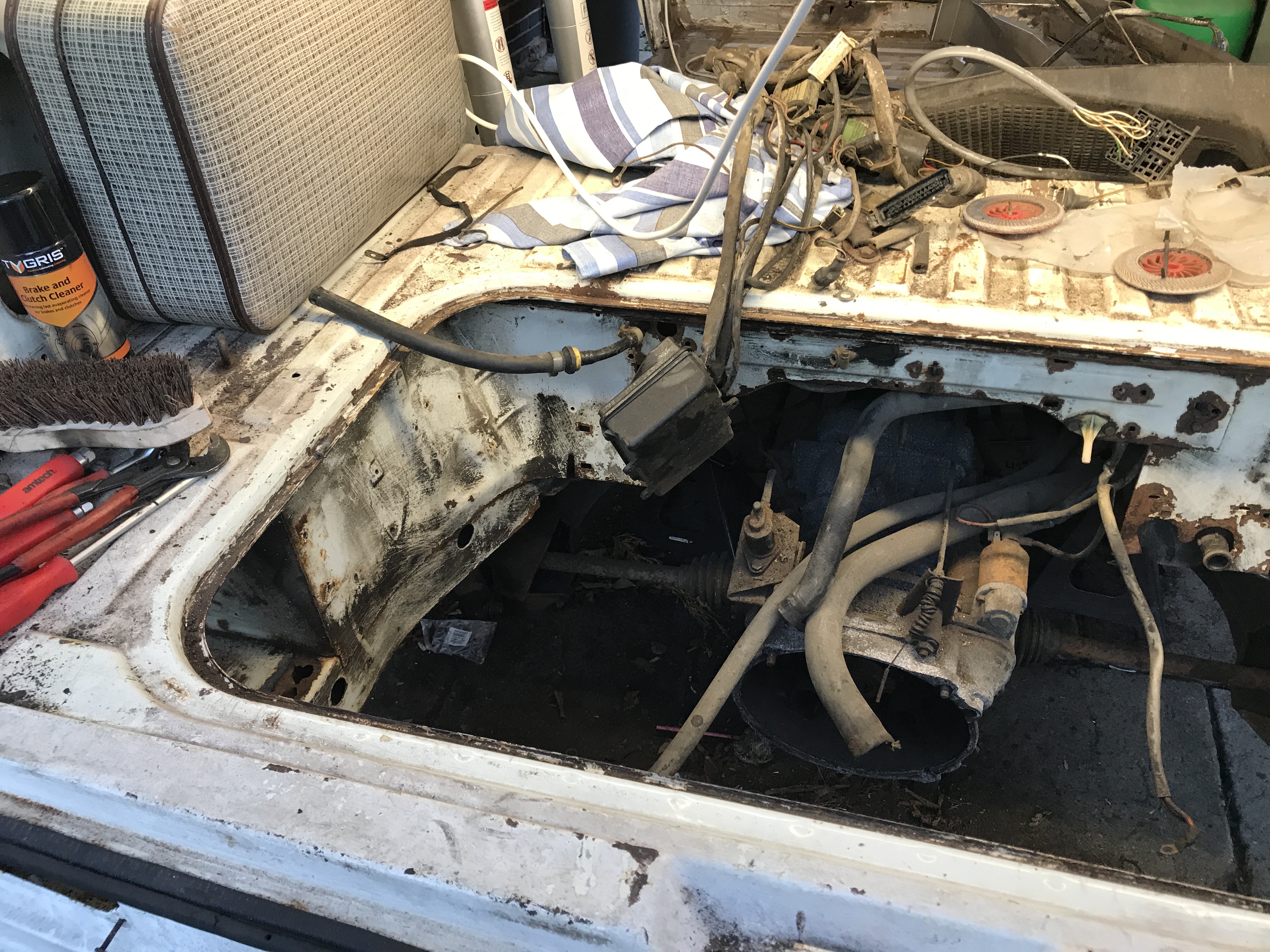 Time to start, after a bit of welding practice on some old scrap i decided to start off on the front end, strip it all down to good metal and see what’s going on underneath, cut away all the front upper and lower panels to reveal a lot of surface rust, a bit of rot which got cut out and what looked like a couple of panels to replace / weld back in, obviously this being all new to me i took my time and tried to at least think about it before rushing in, after cutting out the rot i treated the whole area with rust treatment and tacked in the upper panel, that went quite well after the windscreen repair (that was hard as my first proper welding experience) i left out the lower panel as the cab floors needed repairing and i thought it best to leave this area free to access it better later on…turned out to be a good idea as you will see later on.