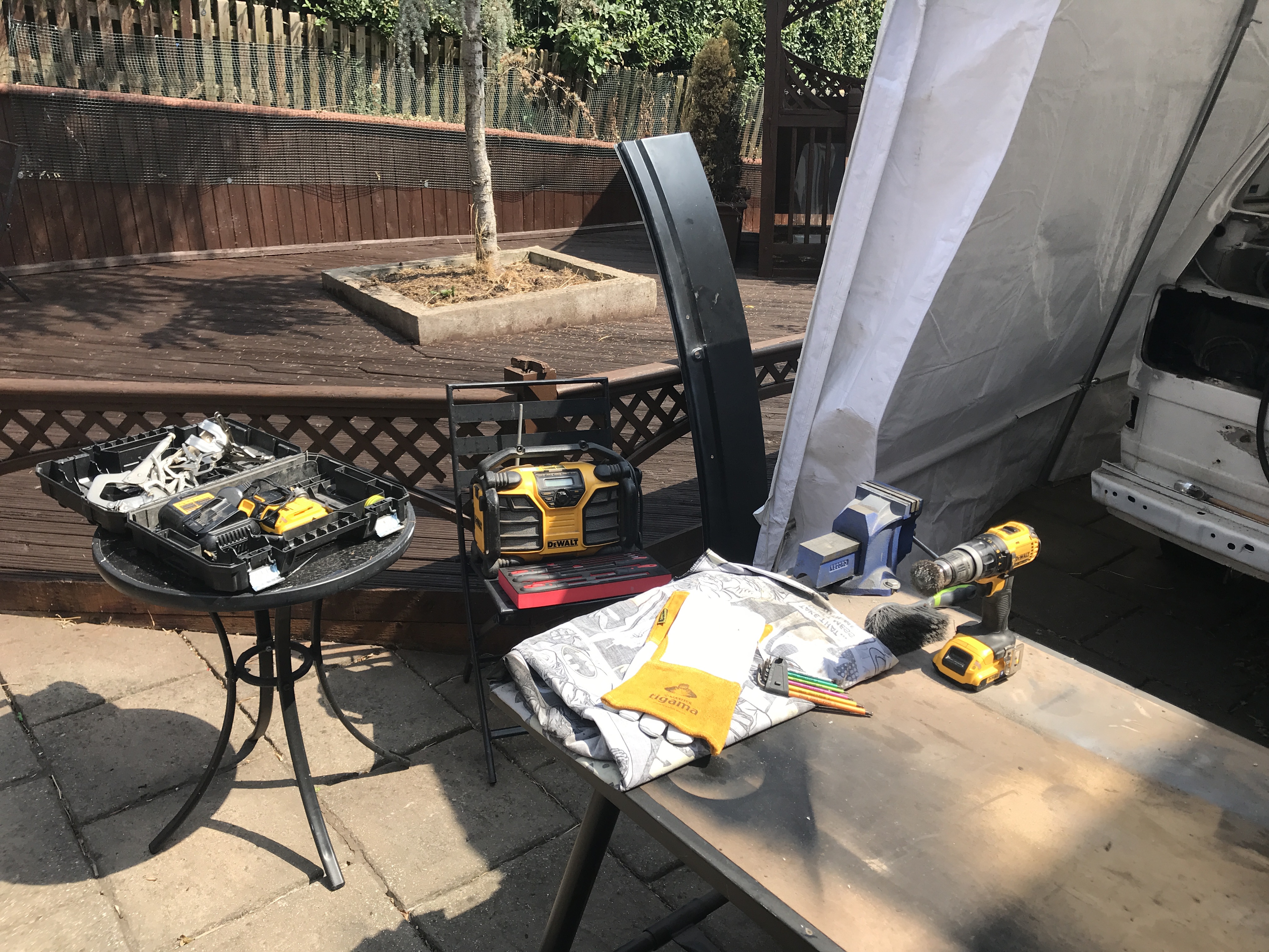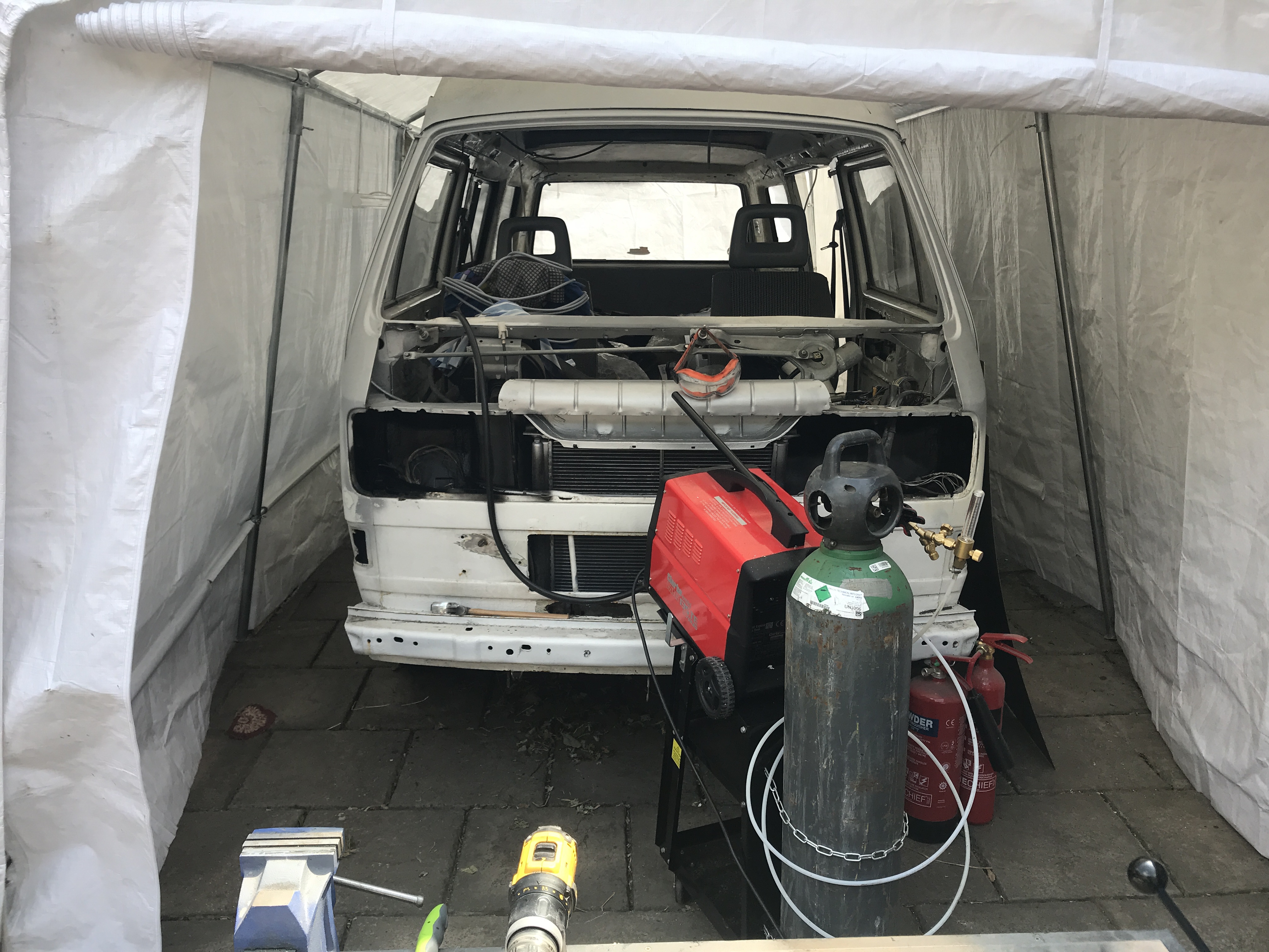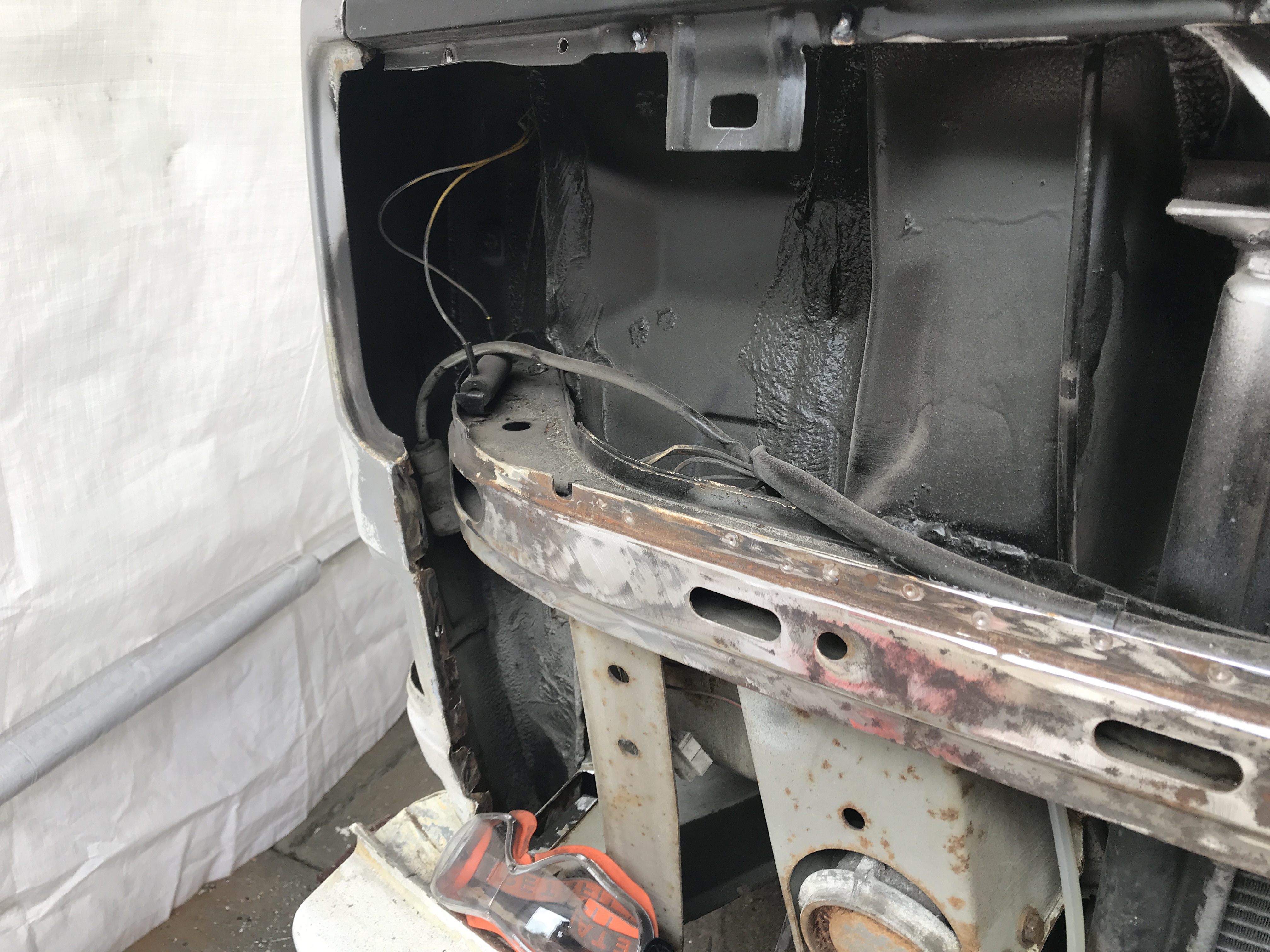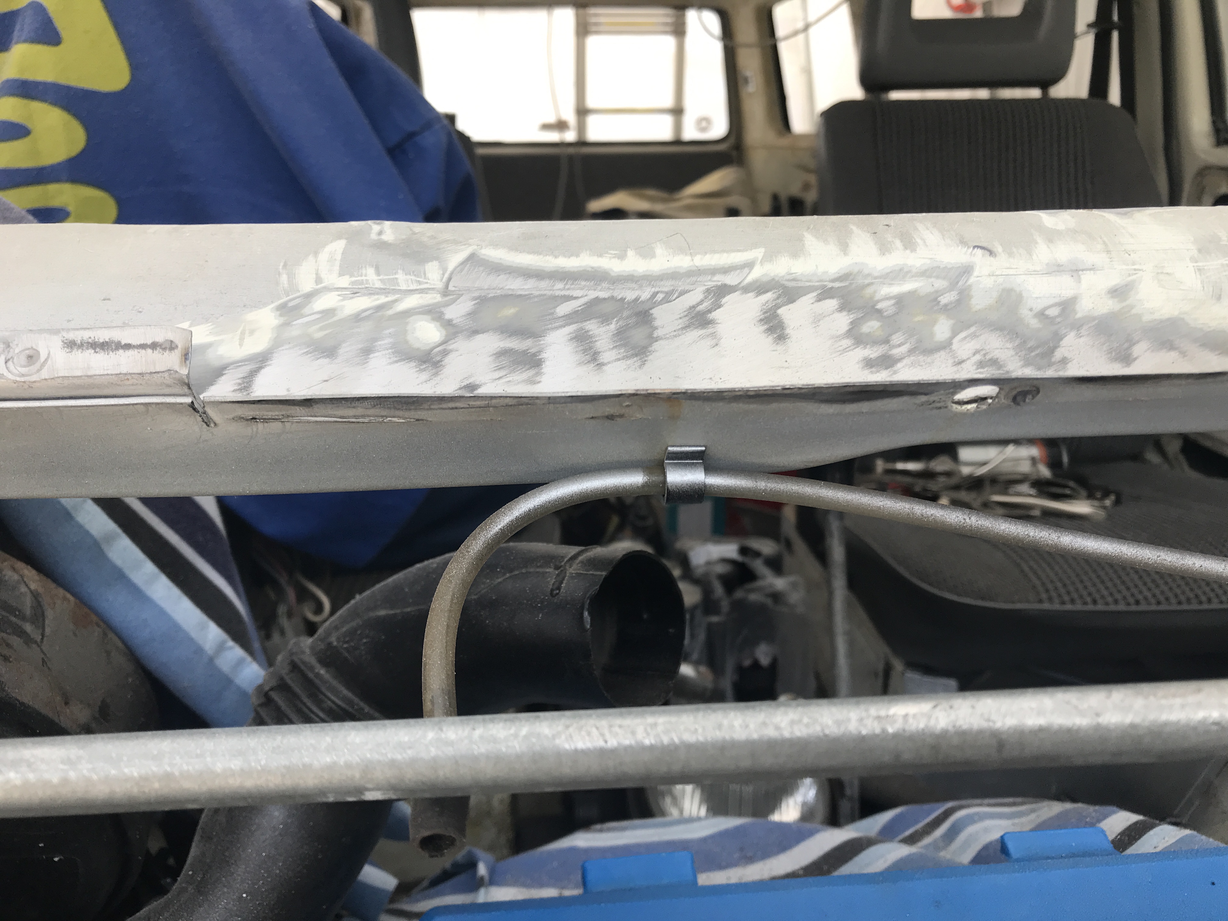 Time to start, after a bit of welding practice on some old scrap i decided to start off on the front end, strip it all down to good metal and see what’s going on underneath, cut away all the front upper and lower panels to reveal a lot of surface rust, a bit of rot which got cut out and what looked like a couple of panels to replace / weld back in, obviously this being all new to me i took my time and tried to at least think about it before rushing in, after cutting out the rot i treated the whole area with rust treatment and tacked in the upper panel, that went quite well after the windscreen repair (that was hard as my first proper welding experience) i left out the lower panel as the cab floors needed repairing and i thought it best to leave this area free to access it better later on…turned out to be a good idea as you will see later on.